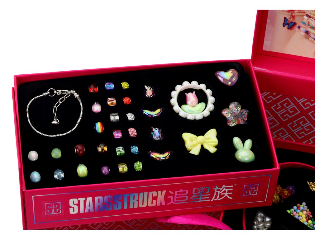 Mimořádná sada korálků, která vaše dítě vezme do světa nekonečné zábavy a kreativity. Tato jedinečná sada zabalená ve velké čtvercové růžové krabici s působivými rozměry 26 cm x 23 cm x 23 cm potěší každého malého umělce. Když krabici otevřete, stěny krabice se otevřou a odhalí tři velké police, z nichž každá je plná barevných pokladů na výrobu šperků.