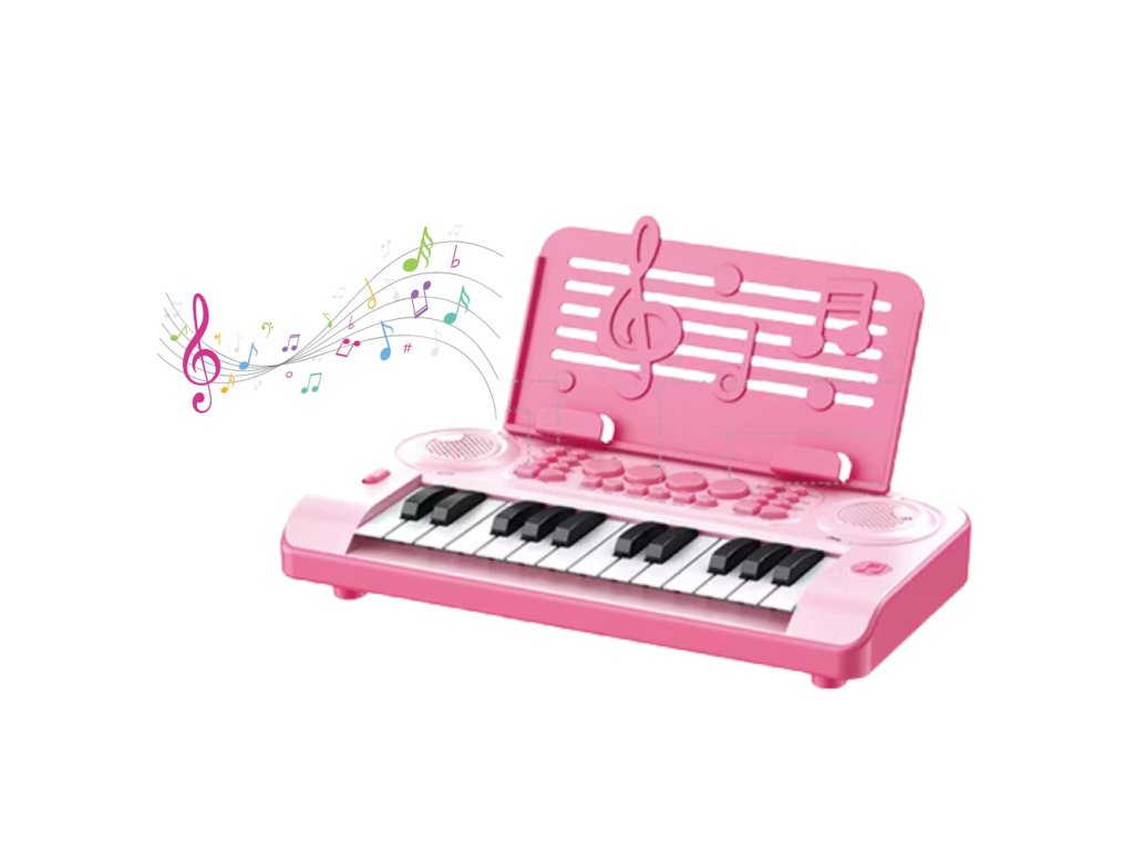 24K Vzdělávací elektronické piano s růžovým notovým stojanem