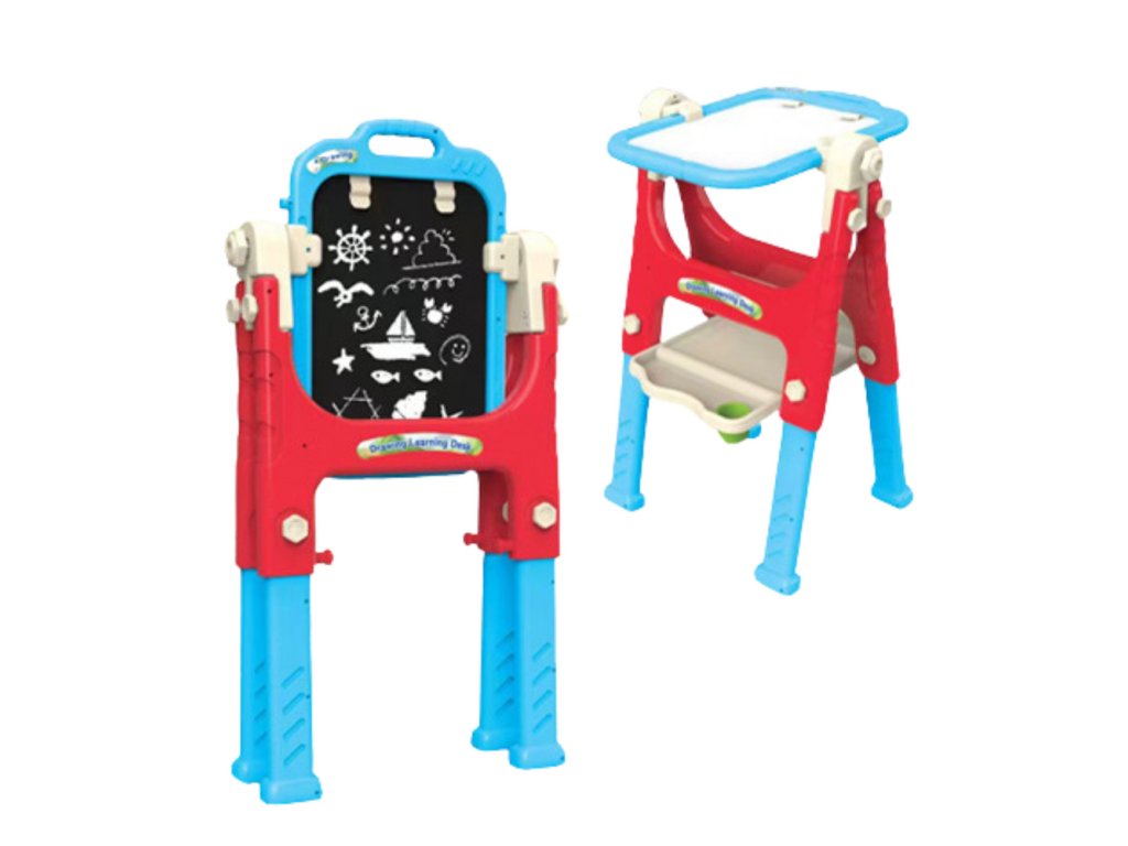 Kreslicí stůl je rozsáhlá vzdělávací sada 5v1, která dětem umožňuje umělecky se rozvíjet a bavit se kreslením, psaním a malováním. Je to dokonalá kombinace za sucha stíratelné tabule, křídové tabule, psacího stolu, stojanu a místa pro uložení příslušenství - vše v jedné barevné struktuře.