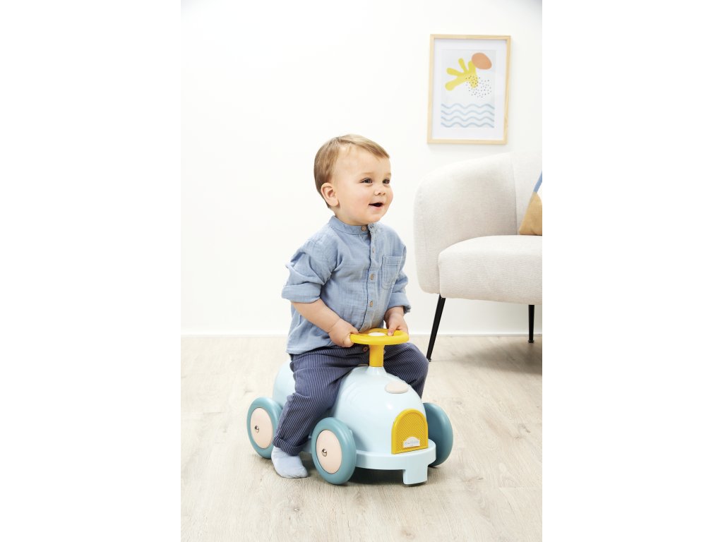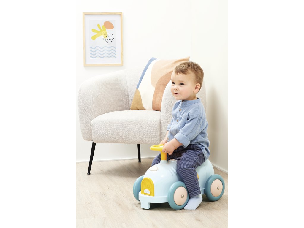 Vozidlo má sedačku vhodnou pro děti od 12 do 36 měsíců, a plastová kola. Celé vozidlo měří 52,5 x 32 x 31,5 cm