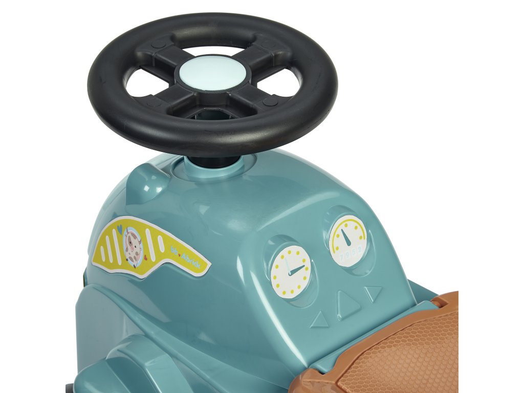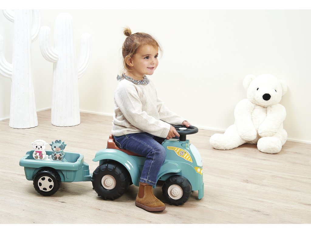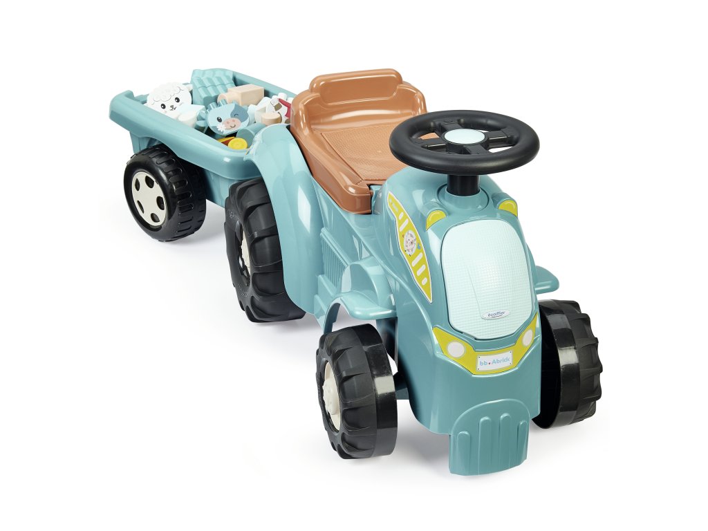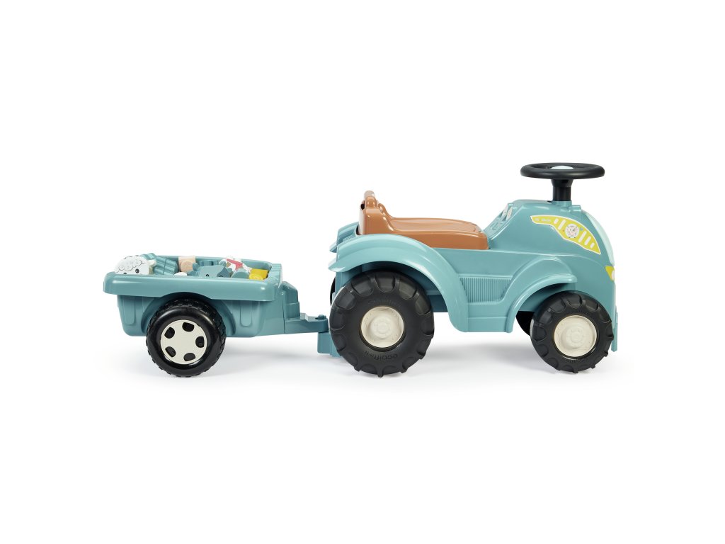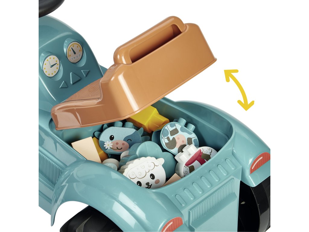 Vozidlo má sedačku vhodnou pro děti od 12 do 36 měsíců s úložným prostorem na poklady, a modrý přívěs, který lze připojit k vozidlu. Celé vozidlo má rozměry: 86 x 32,5 cm .