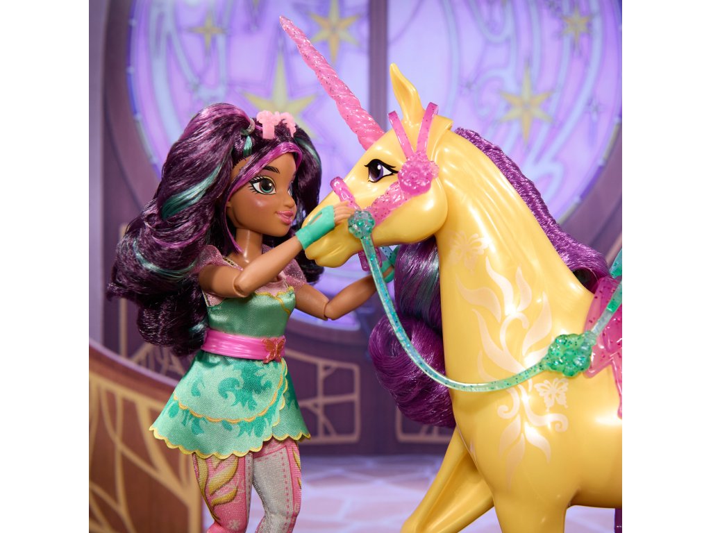 Inspirováno oblíbeným animovaným seriálem Unicorn Academy . V této magické škole se mladí hrdinové učí rozvíjet jedinečné schopnosti svých jednorožců, upevňovat přátelství a překonávat jedinečné výzvy. Tato herní sada umožňuje dětem ponořit se do světa Sparkle Lake a znovu si vytvořit svá oblíbená dobrodružství z představení nebo vytvořit své vlastní nápadité příběhy.