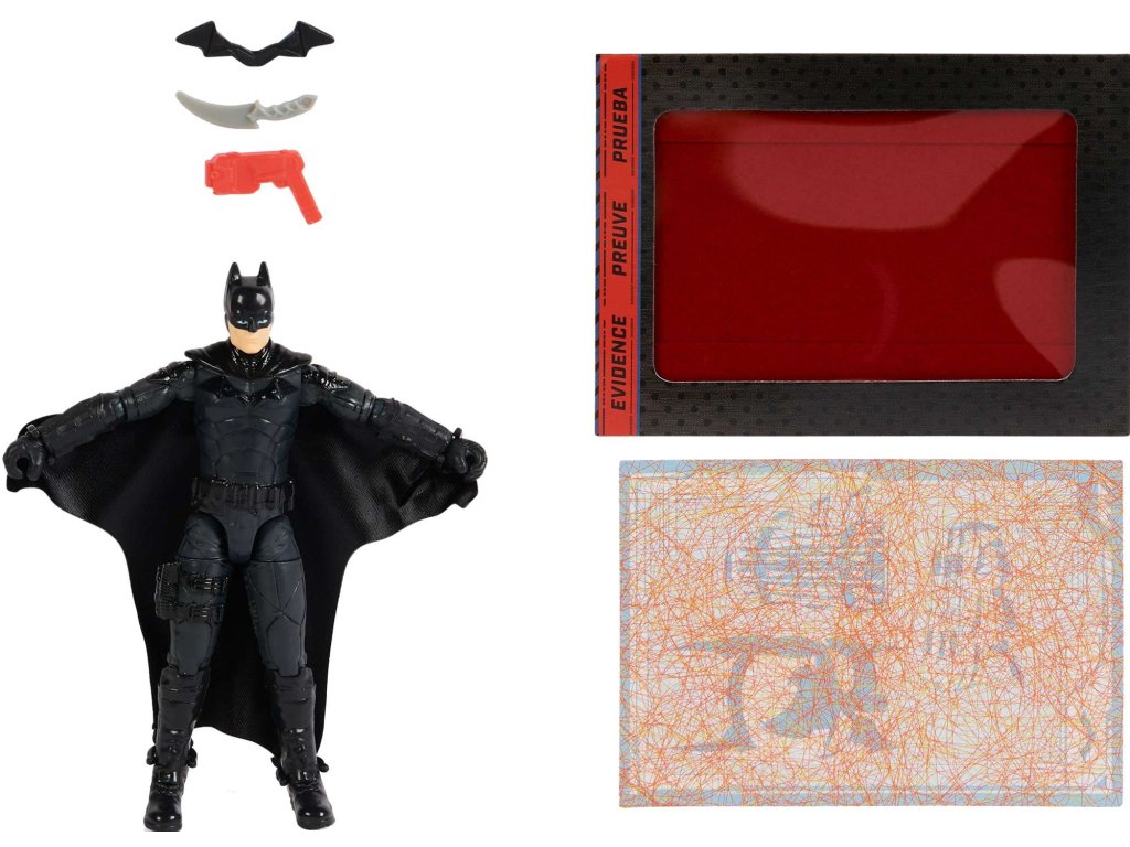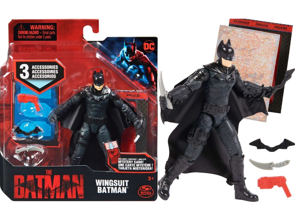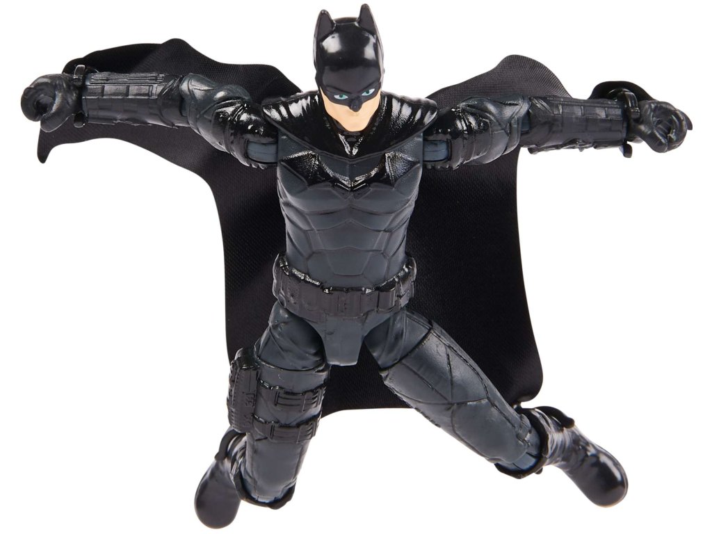 Figurka zobrazuje postavu Batmana v černém kostýmu, obsahuje wingsuit s rozšiřujícími se křídly. Jeho černá pláštěnka je vyrobena z látky a při hře létá jako skutečná. Netopýří muž má až 11 bodů artikulace - otáčecí hlavu, pohyblivé ruce a nohy - díky tomu ho snadno postavíš do různých dynamických póz. Hračka vyrobená velmi detailně ve filmovém stylu a je vysoká přibližně 10 cm. Pochází z řady figurek od společnosti Spin Master pod licencí DC Comics a věrně kopíruje předlohu.