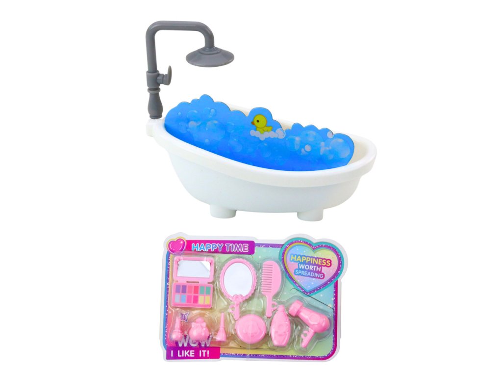 Středobodem setu je velká, bílá vana se sprchou, naplněná realisticky reprodukovanou pěnou a gumovou kačenkou. Sada obsahuje také kosmetické doplňky: kartáč, zrcátko, fén a další doplňky, které zlepšují hru a umožňují vytvoření každodenních hygienických a relaxačních rituálů.