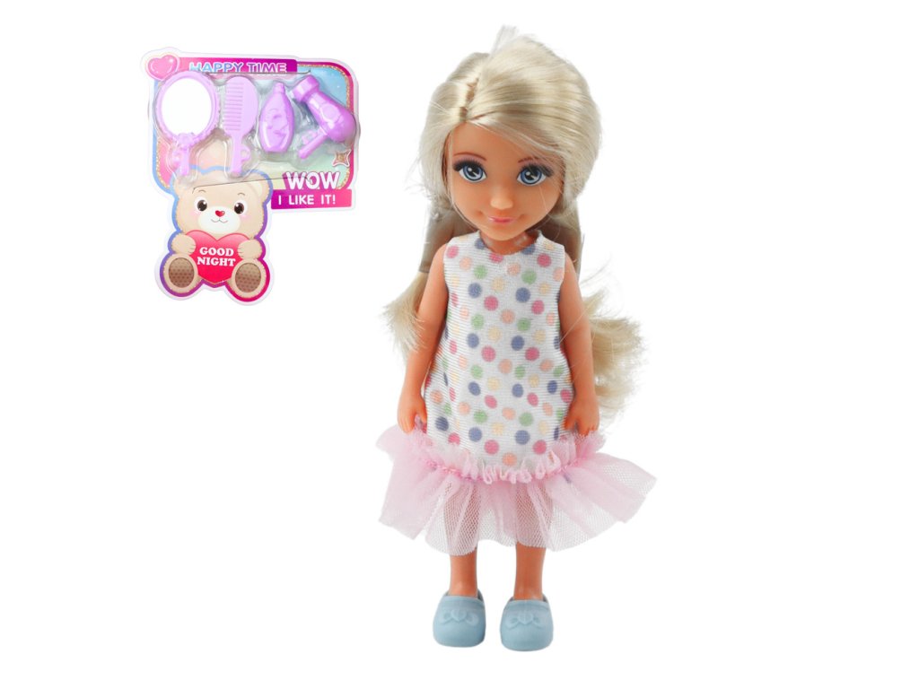 Panenka je oblečená v barevných šatech a díky přiloženému nábytku a doplňkům je hra ještě realističtější. Toaletní stolek umožňuje zábavný styling a přípravu panenky na den, zatímco postel s měkkou peřinou a polštářem je ideální pro hraní rolí souvisejících s relaxací a spánkem.