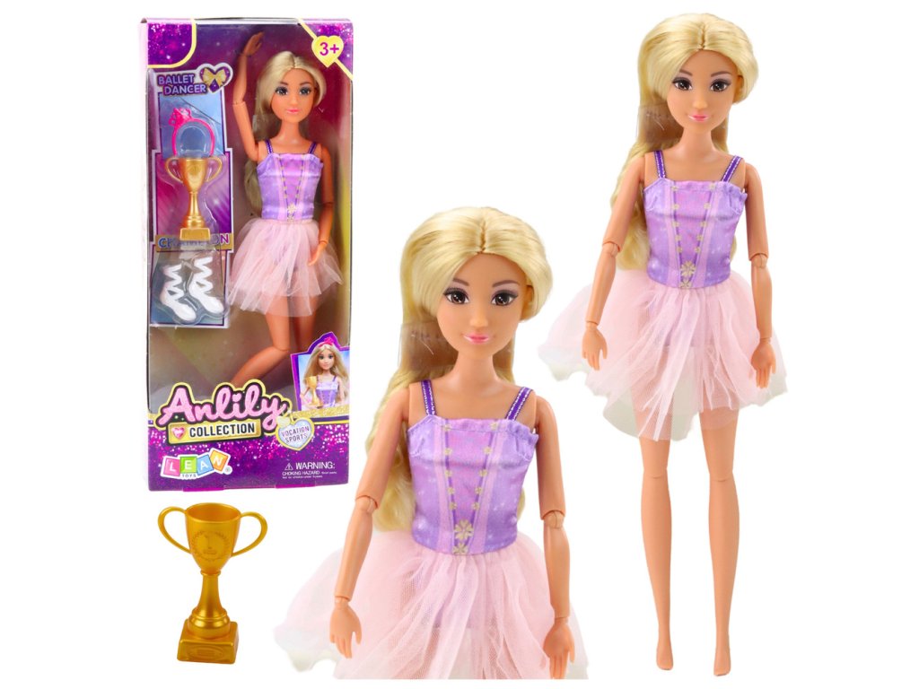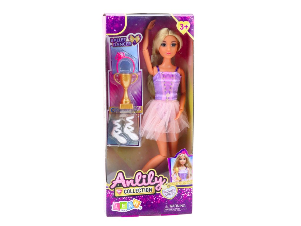 Panenka Anlily Ballet Dancer v šatech je elegantní a okouzlující hračka, která potěší každou malou tanečnici. Oblečená v jemných baletních šatech v pastelových barvách – fialovém topu s třpytivým zdobením a lehké tylové sukni – vypadá neuvěřitelně nápadně a podporuje hraní rolí. Největší předností panenky jsou její plně pohyblivé končetiny – paže, nohy a kolena – což jí umožňuje pózovat v různých tanečních pózách a dodává hře punc realismu.