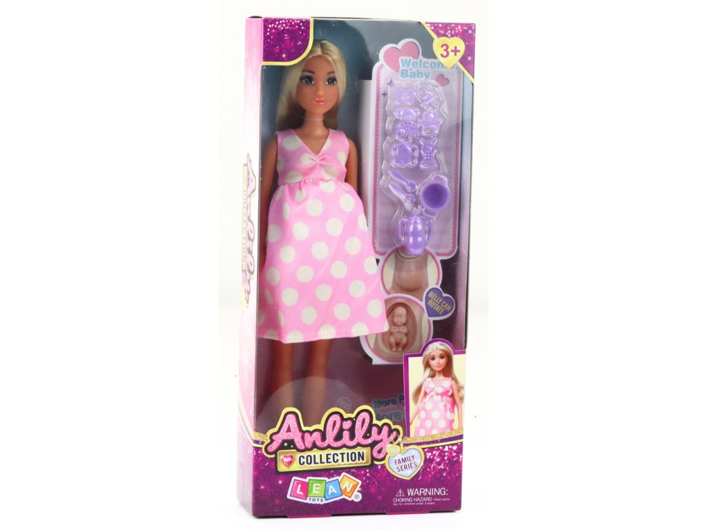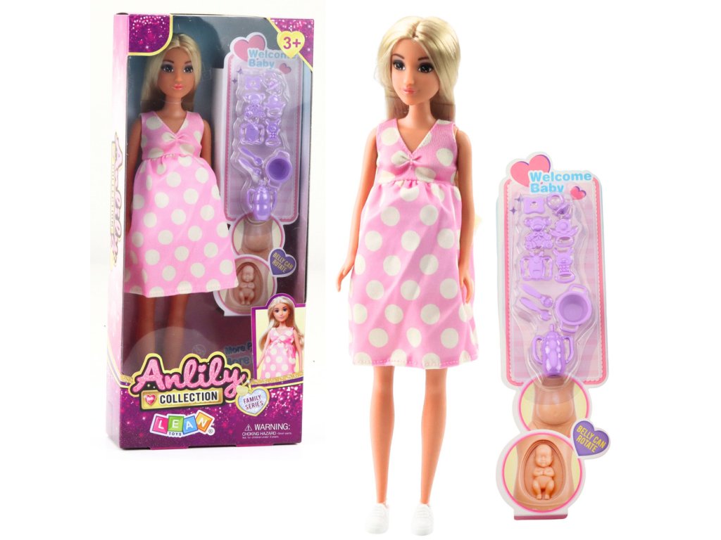 Anlily Těhotná panenka Puntíkované šaty Doplňky Miminko