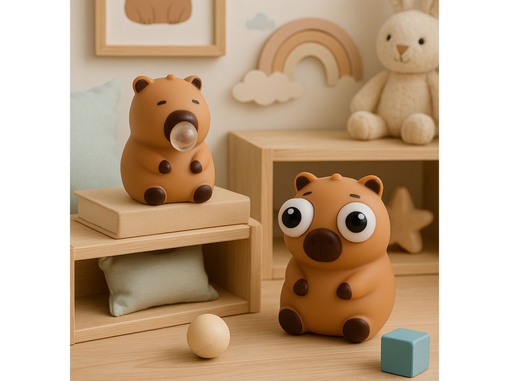 Tato měkká hračka ve tvaru kapybary je hračka pro úlevu od stresu, která kombinuje jednoduchý design s překvapivým efektem a spoustou zábavy. Produkt je navržen tak, aby reagoval na stisknutí vizuálně přitažlivým způsobem. Stisknutím hračky se uvolní průhledná bublina nebo se odhalí její charakteristické velké oči, což vykouzlí úsměv a povzbudí k opakovanému použití.