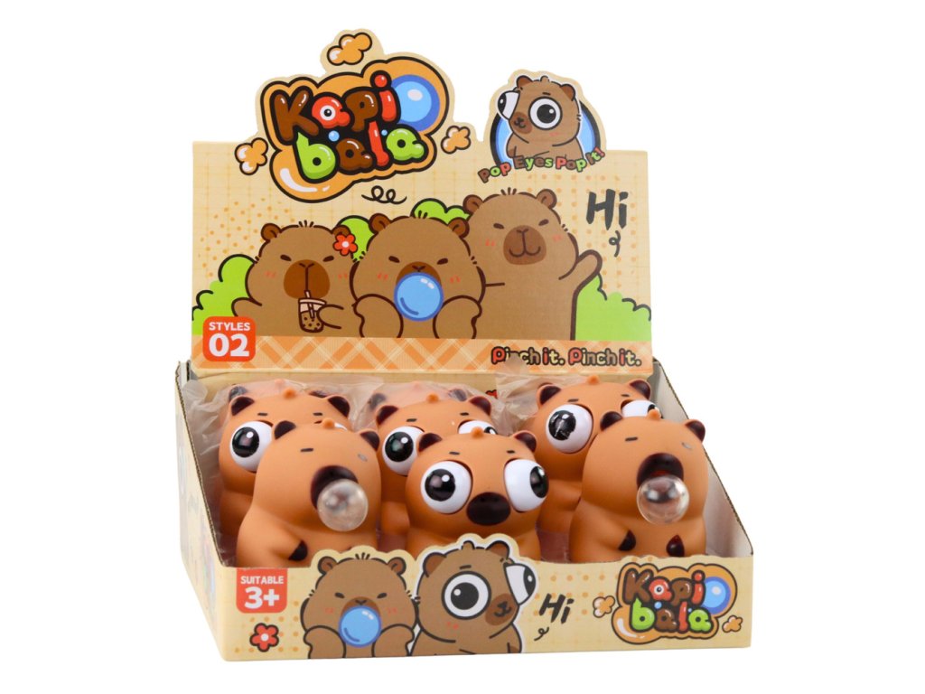 KAPIBARA TENKÁ HRAČKA PROTI STRESU S BUBLINKOU A VYPADAJÍCÍMA OČIMA
