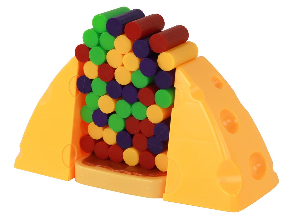 Začneme sestavením sýra se základnou a přejdeme ke stavbě věže z barevných trámů. Na jeho vrchol umístíme pěknou myšku, která po čerstvém jídle nesnáší žádné vyrušování. Úkolem hráčů je tahat balíky ze stromu a vybrat si náhodnou barvu. Klíčová je však opatrnost, aby myš nespadla.