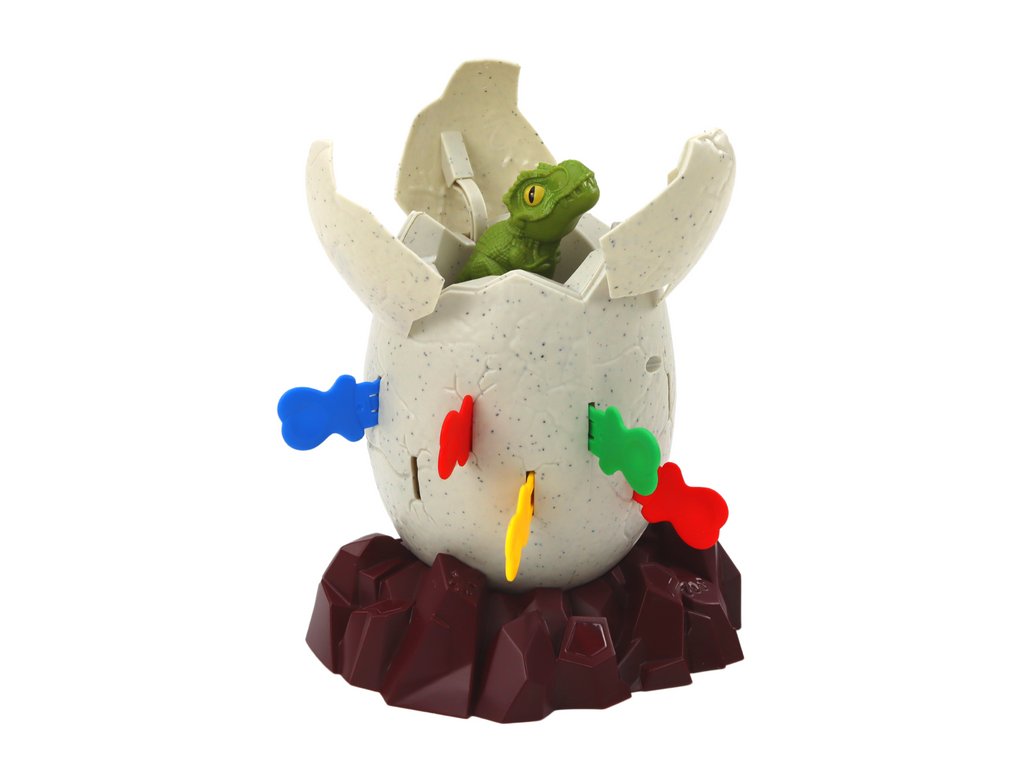 Umístěte vajíčko na připojený hnědý stojánek a poté vložte dinosaura do vajíčka. V tuto chvíli můžeme začít hrát a jemně po ní posouvat klacky. Je to zdánlivě jednoduchý proces, ale nyní se připravte na ten nejzábavnější okamžik – když hráč umístí hůl na správné místo, dinosaurus najednou vyskočí z vajíčka! Tohle je moment, který všechny rozesměje a vyvolá vlny smíchu.