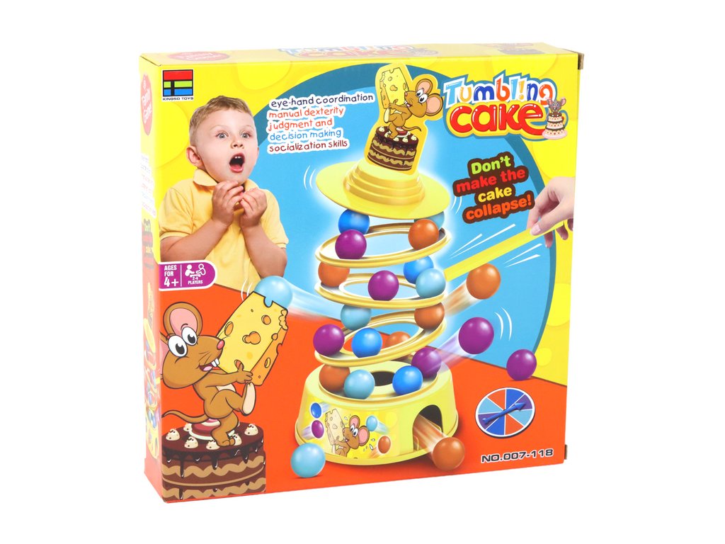 Nejprve sestavíme naši balancující věž. Použijeme základ, na který umístíme barevné kuličky. Poté přidáme další vrstvy naší sýrové hory a kuliček. Věž korunujeme krytem s veselou myškou. Hra spočívá v zatlačení koule předem vylosované barvy do naší věže. Celá konstrukce je pohyblivá a nestabilní, takže to není snadný úkol. Ten, kdo srazí věž a způsobí pád myši, prohrává.