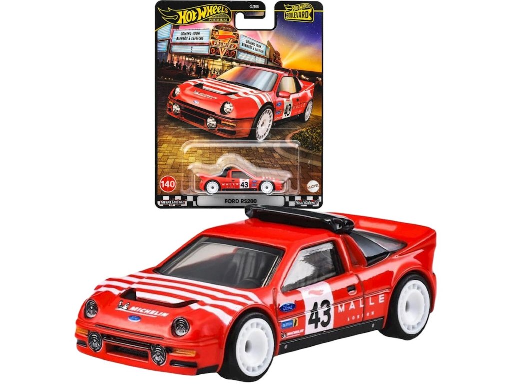 Auto Hot Wheels Boulevard Ford RS200 JBL29Hot Wheels Boulevard je série tlakově litých vozidel v měřítku 1:64 s pneumatikami Real Rider a prémiovou grafikou, perfektní dárek pro sběratele všech věkových kategorií.