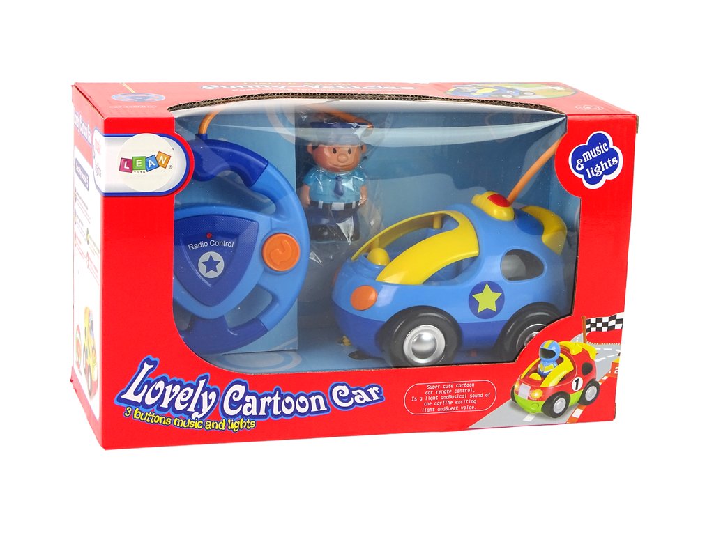 Díky speciálně navrženému praktickému dálkovému ovladači se vaše dítě bude moci naučit řídit auto, tři tlačítka - v horní, přední a uprostřed vozidla pro aktivaci zvuků, doprovázených blikajícími světlomety, hlavní vypínač, umístěný na spodek vozidla, nastartuje vozidlo, auto jede vpřed, couvá a zatáčí světla za jízdy svítí. Rozměry vozidla cca. 13 cm x 11 cm x 10 cm. Rozměry dálkového ovladače cca. 12 cm.
