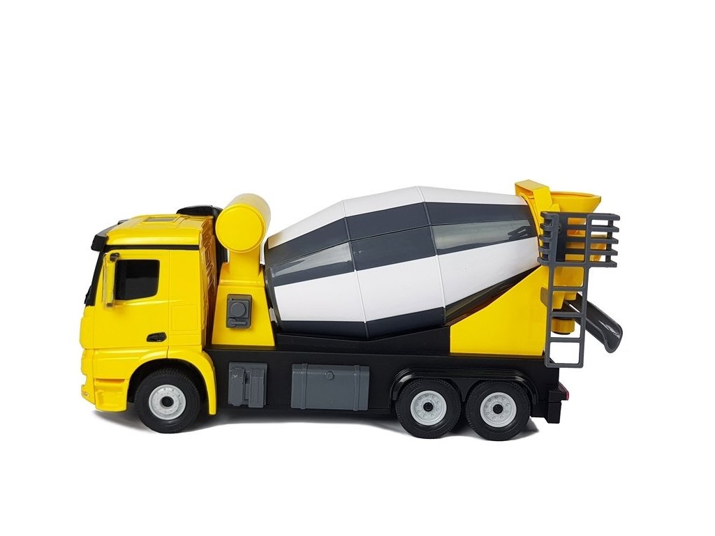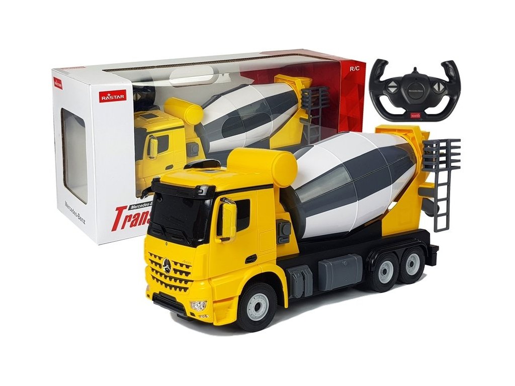 Pokud má vaše dítě rádo těžkou stavební techniku, je to pro něj ideální dárek. Představujeme dálkově ovládanou domíchávač betonu Mercedes-Benz Arocs 2,4GHz - perfektní dárek pro ty, kteří se nespokojí s běžným řízením. Prezentovaná hračka může jezdit vpřed, vzad, otáčet se do stran, ale má také funkci otáčení bubnu. Zkrátka máme co do činění s plně funkčním strojem, připraveným k provozu.