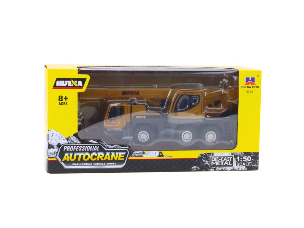 KOVOVÝ MODEL JEŘÁBU HUI NA AUTOKRANE 1:50 – STAVEBNÍ VOZIDLO Z TLAKOVÉHO LITÍ