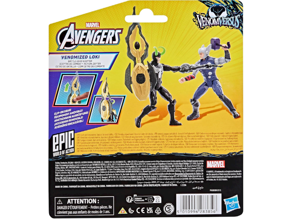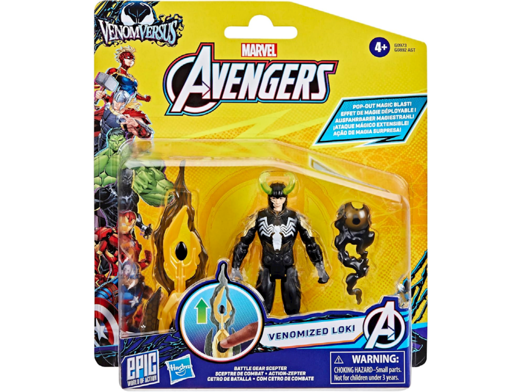 Sada Avengers Venomized Loki G0973Vstupte do světa superhrdinů s touto akční figurkou inspirovanou Marvel Universe! Venomized Loki je unikátní akční figurka zobrazující proslulého boha neplechy Lokiho v temné, symbiotické verzi inspirované silou Venoma. Tato figurka pochází ze série VenomVersus: Epic World of Action a vyznačuje se jedinečným designem inspirovaným symbioty. Díky 9 bodům artikulace ho můžete pózovat v různých dynamických pózách a přehrávat epické bitevní scény. Tato sada obsahuje speciální bojové doplňky, včetně magického žezla s funkcí zasouvacího energetického efektu a dalšího silového efektu, pro vytvoření velkolepých bitevních scén. To je perfektní volba pro fanoušky a sběratele Avengers.