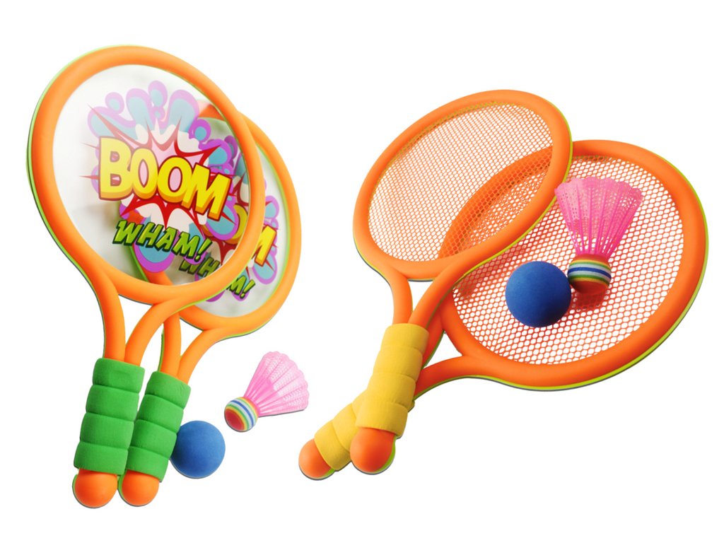 Rakety jsou vyrobeny z bezpečného materiálu a dokonale se hodí pro malé dětské ručičky. Měkká pěna na rukojeti poskytuje pohodlný úchop a minimalizuje riziko odřenin nebo zranění. Díky tomu se i ti nejmladší hráči budou při hře cítit jistě a pohodlně.
