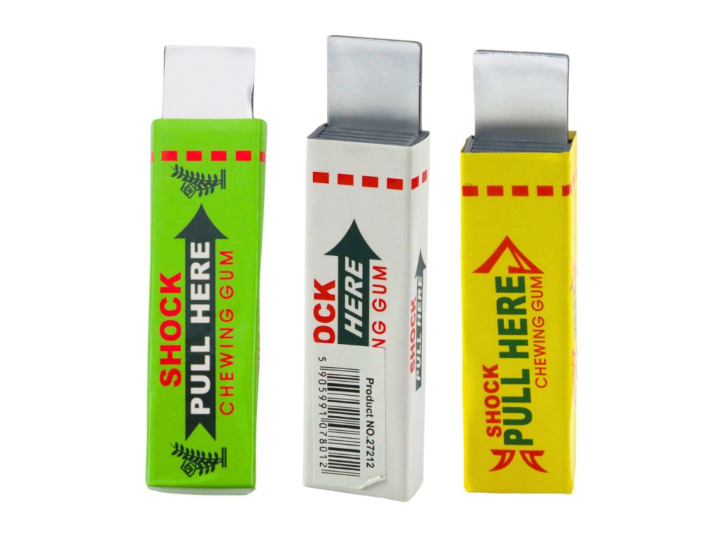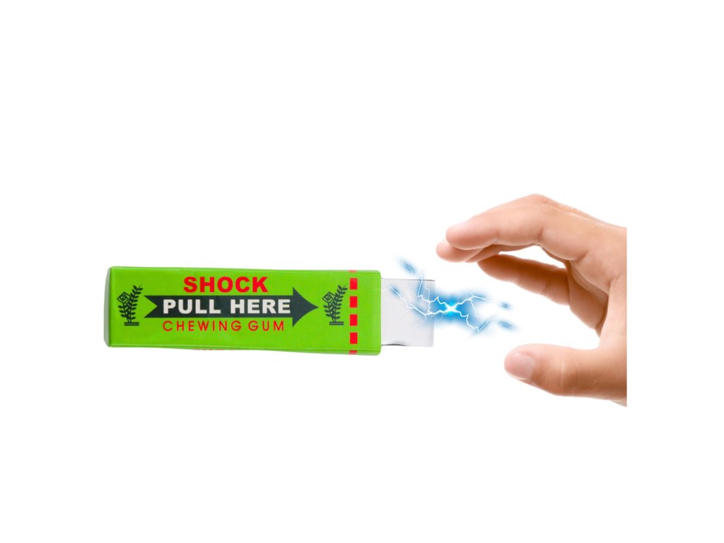 Toto zdánlivě obyčejné balení žvýkaček je ve skutečnosti chytrá žertovní vychytávka. Vypadá jako skutečné balení žvýkaček, ale skrývá zábavné překvapení. Každý, kdo zatáhne za vyčnívající „žvýkací tyčinku“, dostane jemný elektrický šok. Efekt překvapení je zaručen!