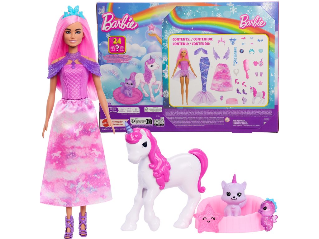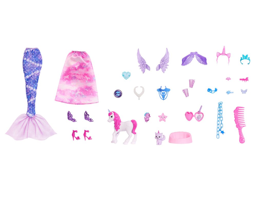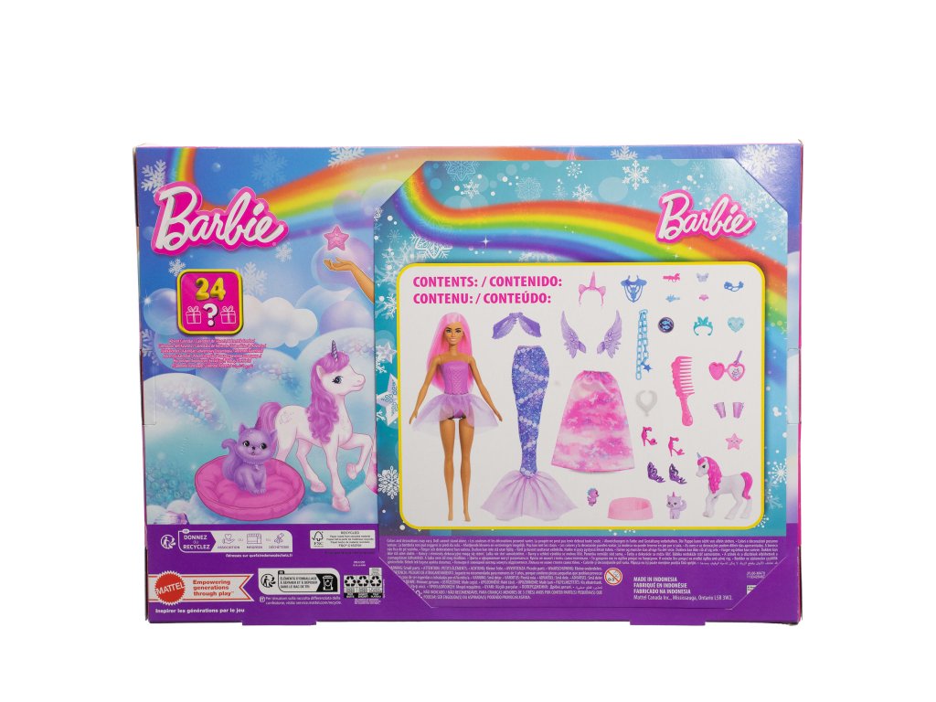 - Sada obsahuje: Adventní kalendář s panenkou Barbie a doplňky - 24 překvapení
