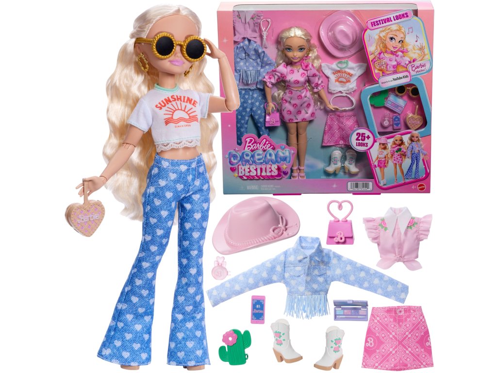 Barbie Dream Besties Festival Looks Sada Malibu Módní Panenka Kovbojka + Příslušenství