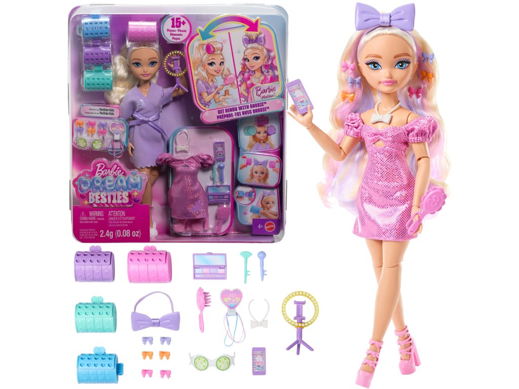 - Společně s přáteli z řady Dream Besties (např. Brooklyn, Teresa, Renee) zařiďte skutečný kosmetický salon, kde se každá panenka zúčastní svého sezení „Get Ready With Me“.