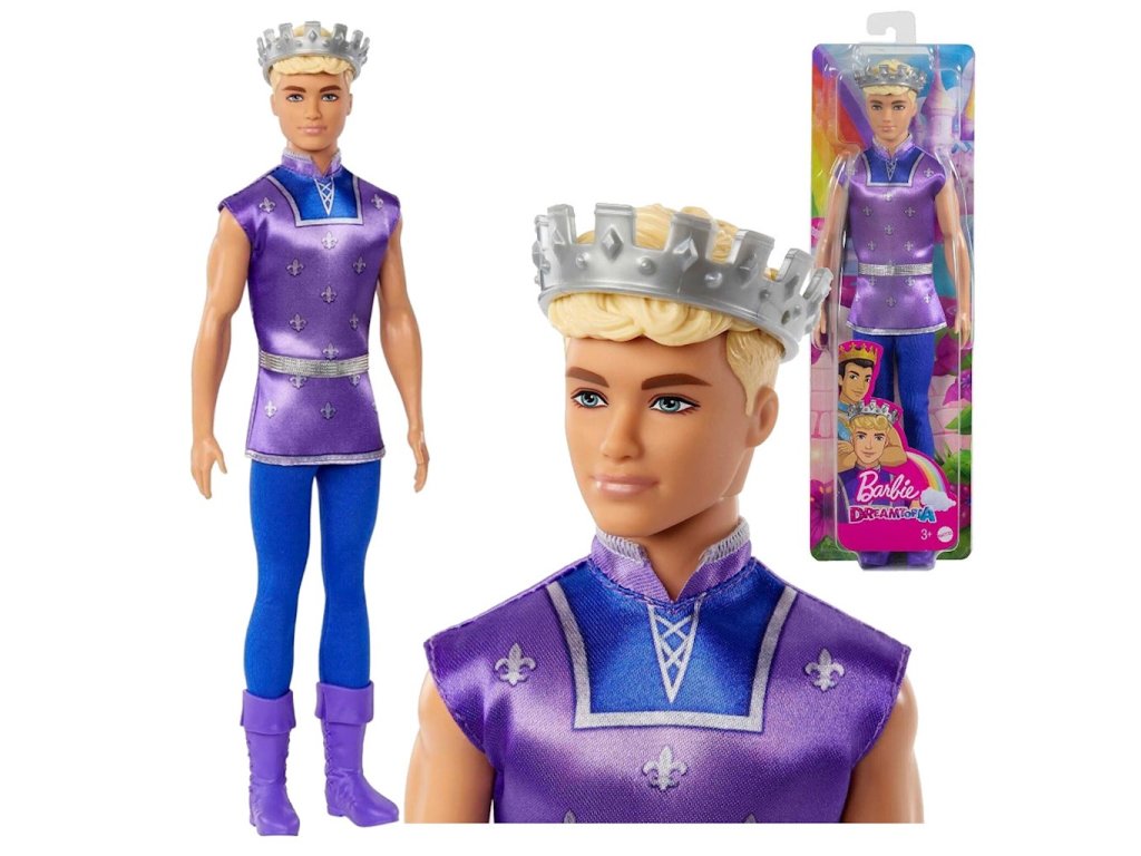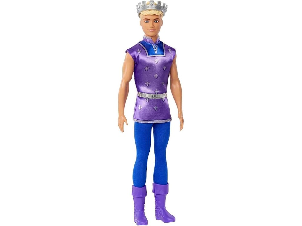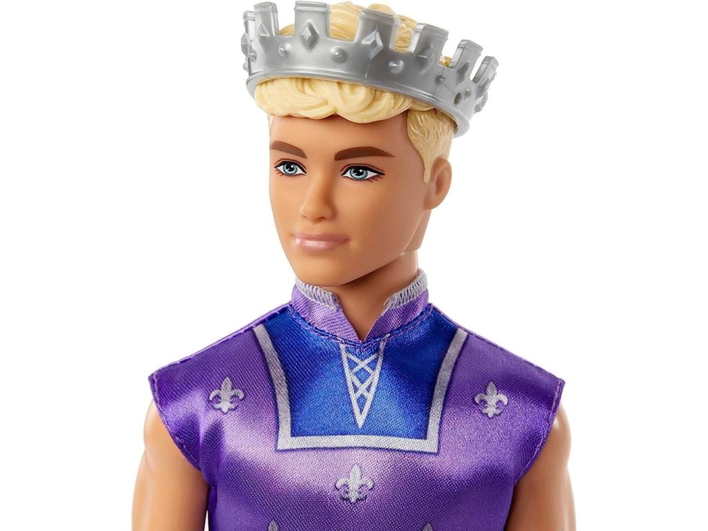 Princ Ken (blondýna) je oblečený ve fialové tunice a jezdeckých botách. Královský vzhled je doplněn působivým stříbrná koruna a modré legíny. S tímto úžasným Kenem Princi, můžeš popustit uzdu své fantazii a vymýšlet nekonečné nápady příběhy. Ken je připraven na jakékoli dobrodružství, od cvalu na koni až po přátelství s kouzelnými tvory. Královská panenka Ken je skvělým doplňkem do každé sbírky Barbie.