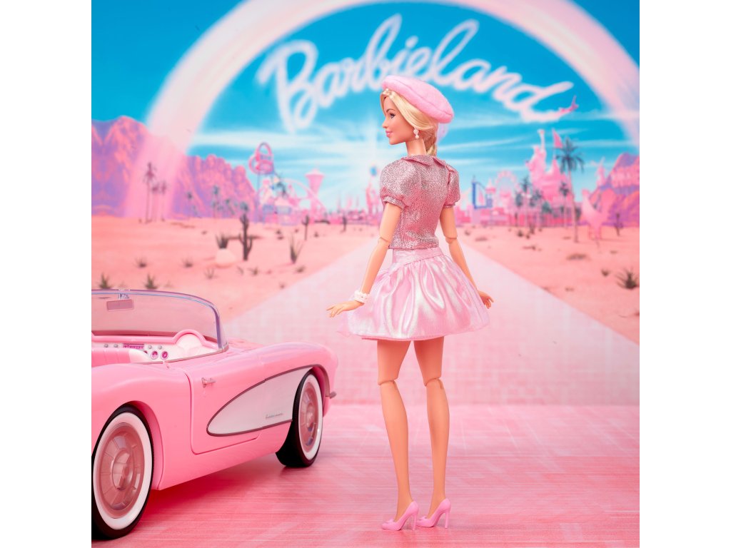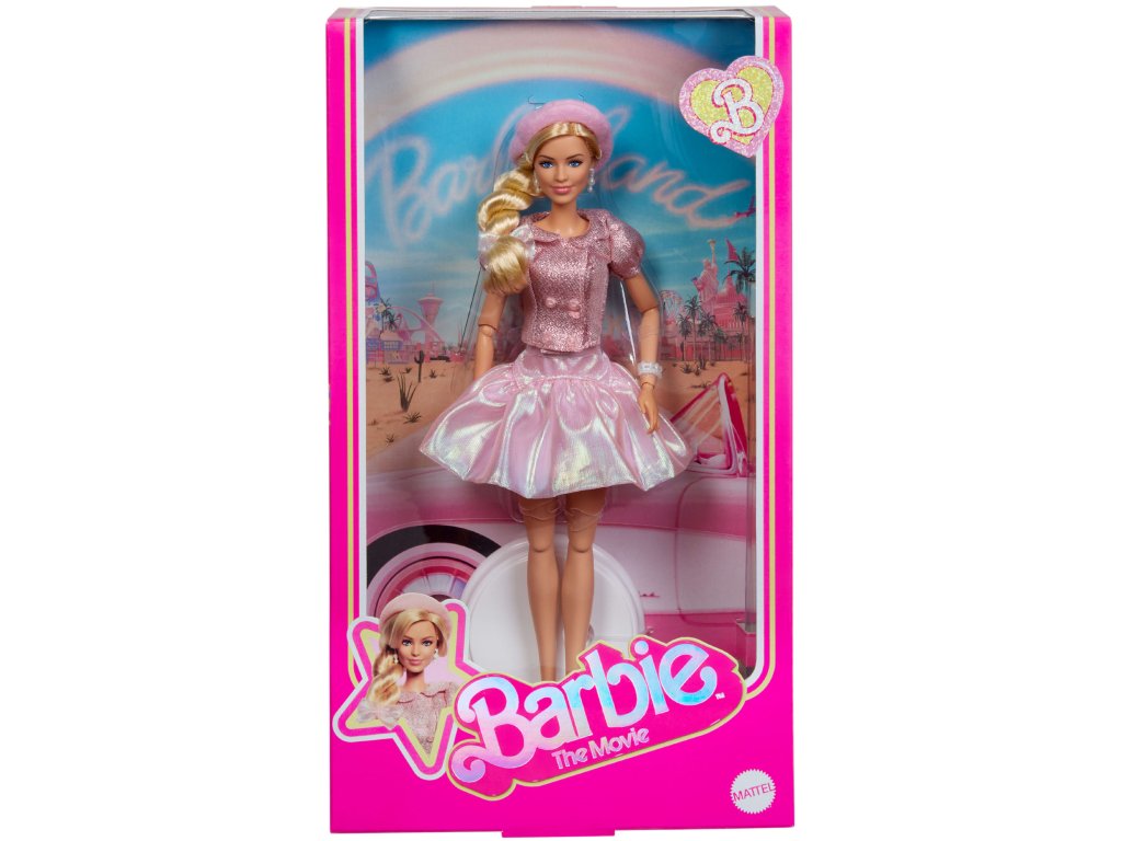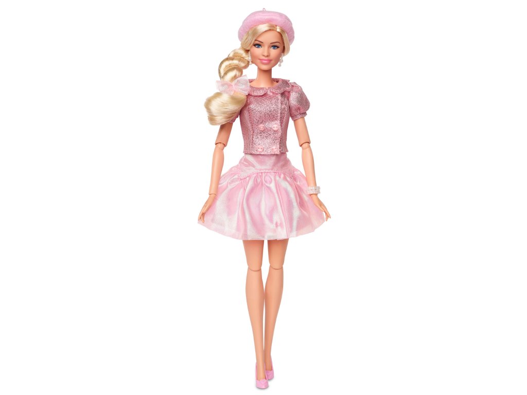 Tato jedinečná blondýnka s modrýma očima se představuje v jiskřivě růžových šatech inspirovaných klasickým stylem hlavní hrdinky z oblíbeného filmu Barbie. Navíc nosí růžový baret a módní kozačky na vysokém podpatku zvýrazňují její elegantní vzhled a vytvářejí jedinečný styl a herní set pro fanoušky a sběratele. Součástí sady je i bílý stojan, na kterém lze panenku vystavit.
