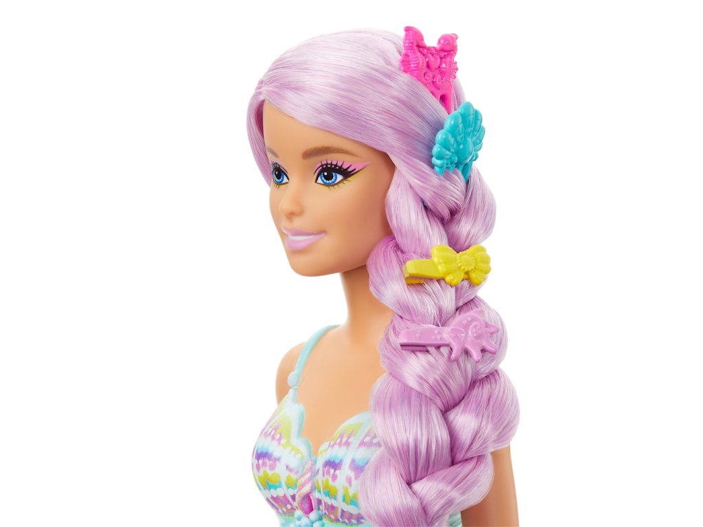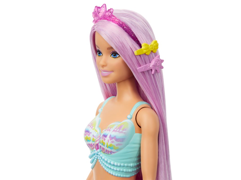 • Panenka Barbie mořská panna, inspirovaná filmem „Barbie: Touch of Magic“, podněcuje představivost a díky svým extra dlouhým, fantastickým vlasům a stylingovým doplňkům je styling zábavný!