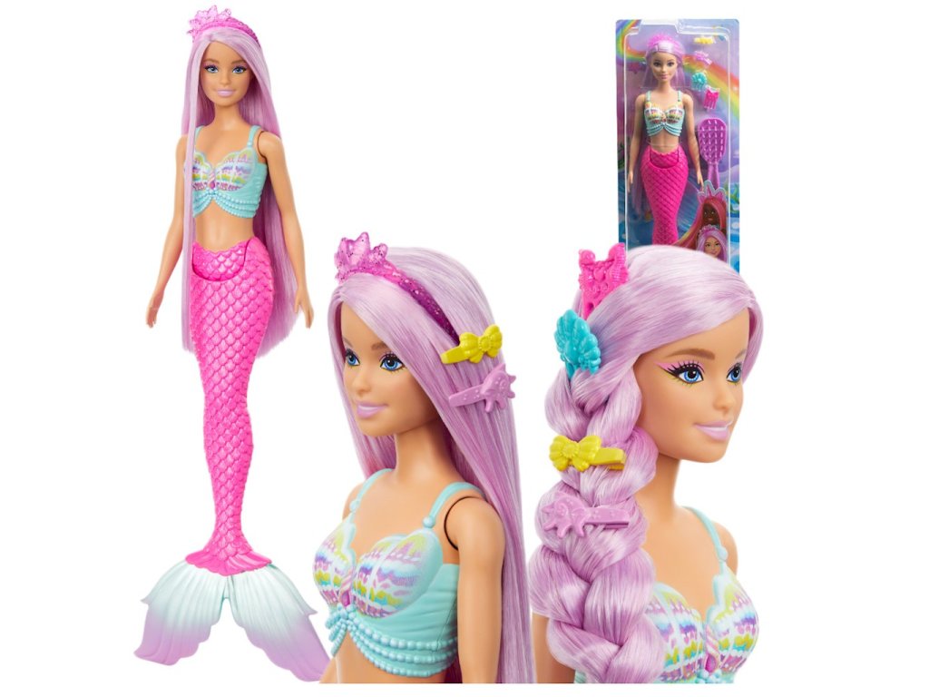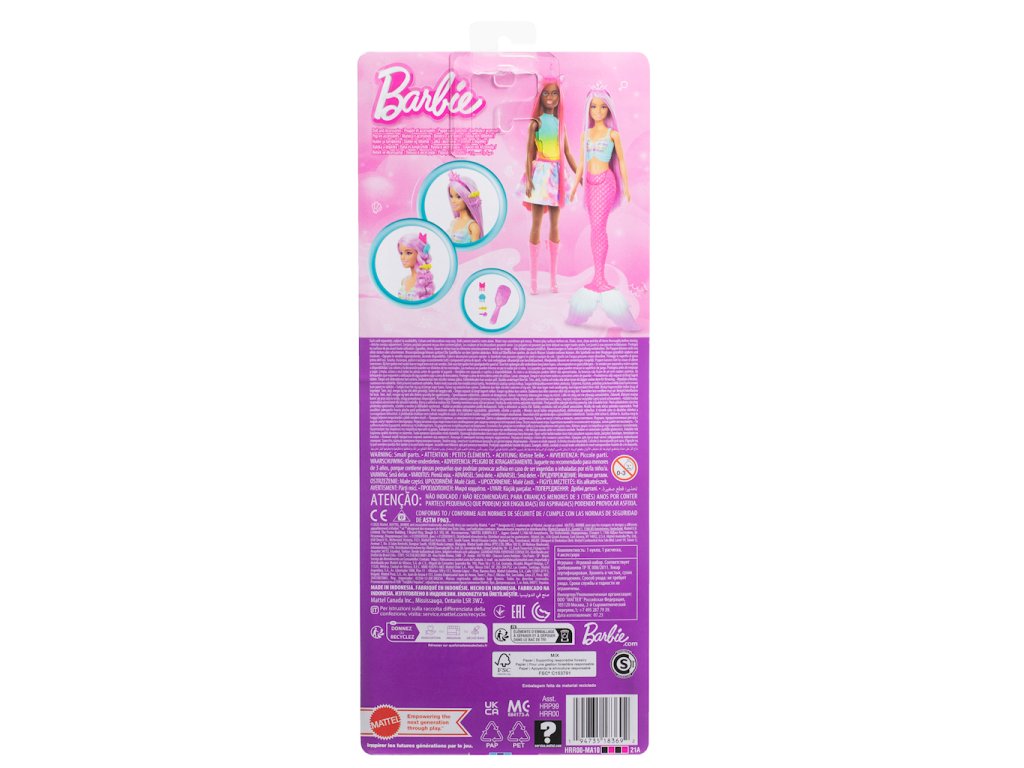 Panenka Barbie mořská panna s dlouhými růžovými vlasy ke kartáčování HRR00Tato fantastická panenka mořské panny Barbie má extra dlouhé barevné růžové vlasy! Děti mohou upravovat její vlasy pomocí přiložených doplňků a poté je vyčesat pro nekonečnou stylingovou zábavu. Okouzlující prvky, jako je čelenka inspirovaná oceánem a živůtek, dodávají této panence Barbie mořské panenky zvláštní kouzlo. Bude inspirovat hodiny oblékání a kreativní hry pro děti od 3 let!