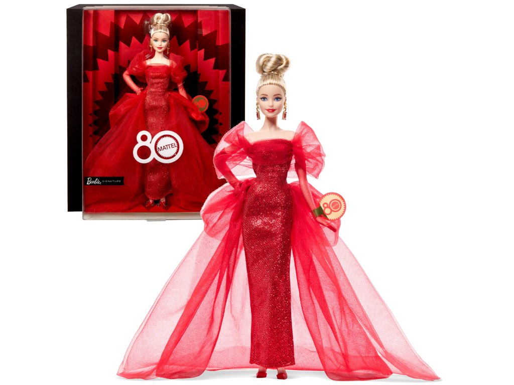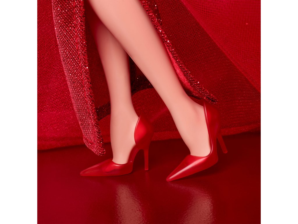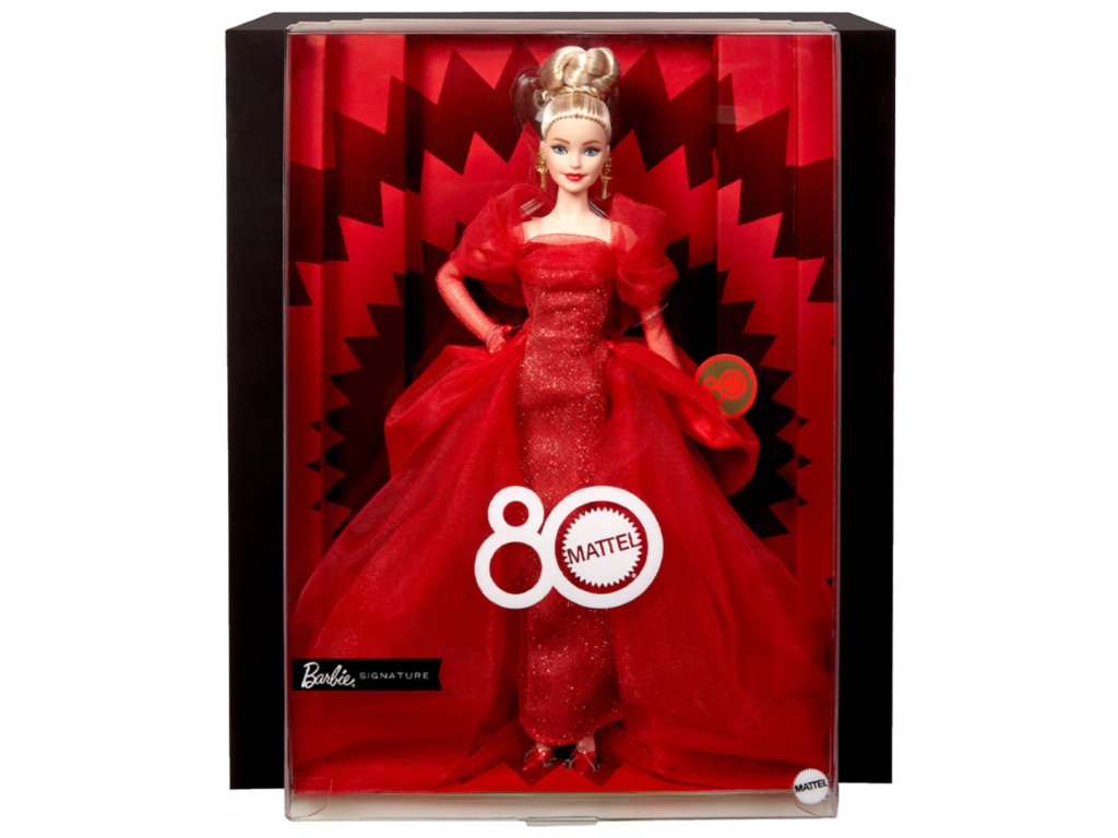 Tato jedinečná sběratelská panenka Barbie byla navržena na počest 80. výročí Mattel . Její vzhled oslňuje elegancí, která připomíná hvězdy červeného koberce . Celý vzhled je proveden v intenzivní červené , symbolizující vášeň, energii a nadčasový charakter značky.
