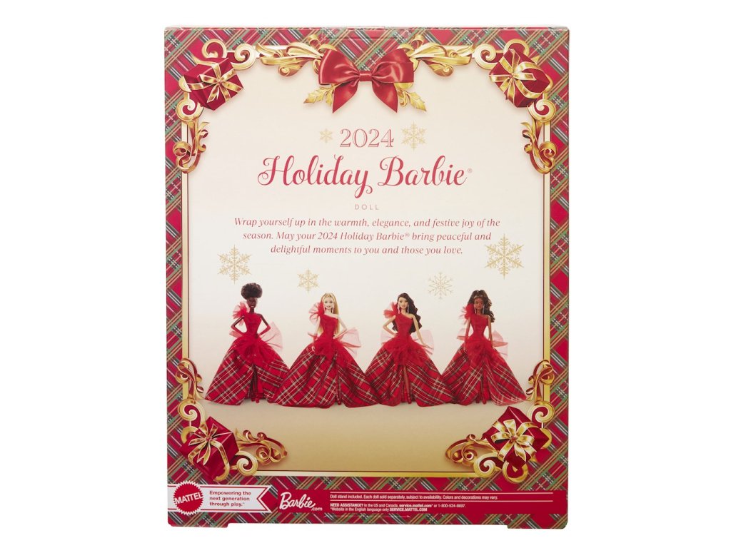 • Díky krásnému balení je Holiday Barbie 2024 perfektní pro darování a vystavení – ať přináší klidné a radostné chvíle do domovů všude!