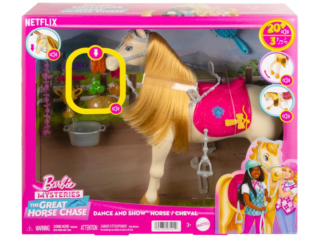 Tornado the Horse ze série Netflix „Barbie Mysteries: The Great Chase“ je interaktivní model koně, který dětem poskytuje spoustu kreativní hry. Kůň má více než 20 zvukových aktivací , díky kterým „tančí“, mrká očima, hraje melodie inspirované show a vydává veselé zvuky koně.