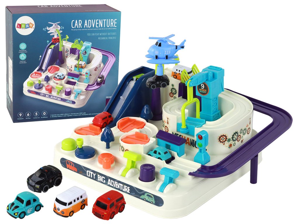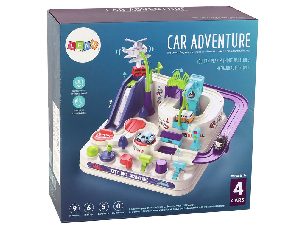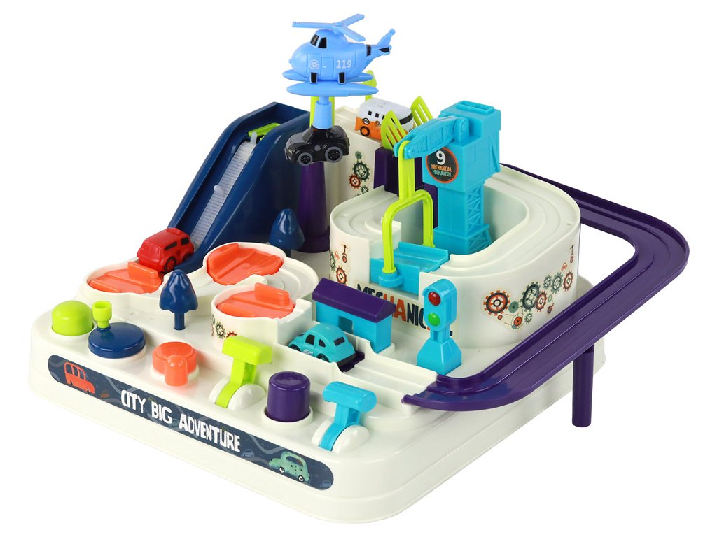 Překážková dráha byla navržena tak, aby rozvíjela dětskou zručnost a kreativitu. Vybavený tlačítky a knoflíky umístěnými na desce, umožňujícími manuální ovládání, dělá z každého sestupu nejen potěšení, ale i výzvu. Batole může řídit jedno ze 4 autíček obsažených v sadě, překonávat různé překážky, měnit směr jízdy a prozkoumávat fascinující trať.