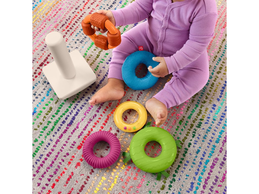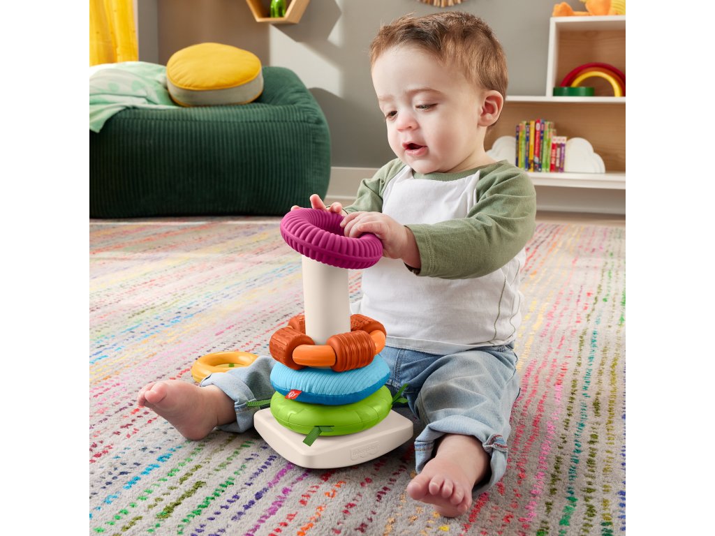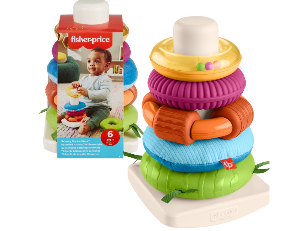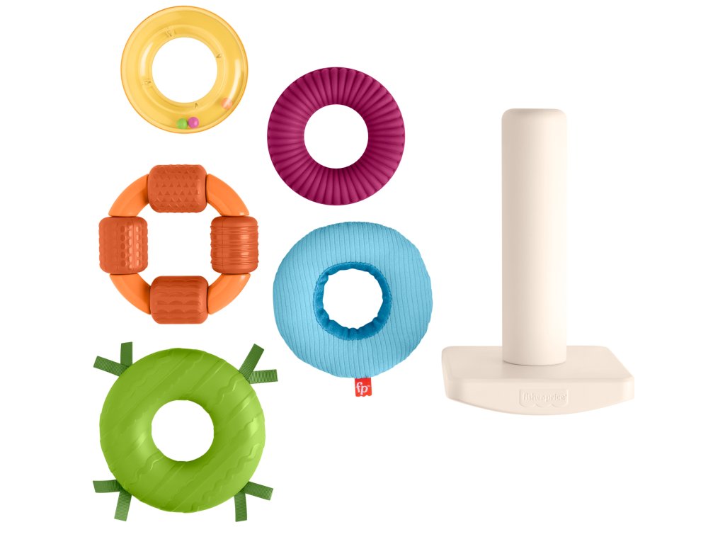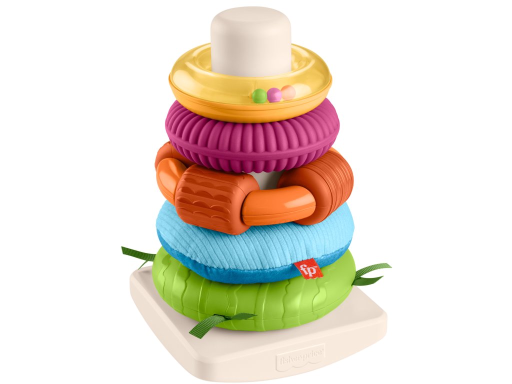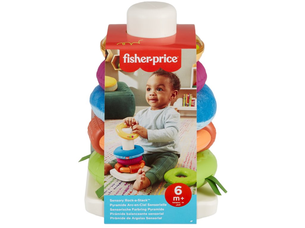 Objevte novou verzi klasické vratké hračky pro miminka! Pyramida smyslových kruhů Fisher-Price je sada pěti jedinečných barevných kruhů s různými texturami a materiály, které povzbudí vaše batole, aby chytlo, třáslo, kousalo a skládalo – to vše na jemně houpavém základu a je ideální pro procvičování motoriky.