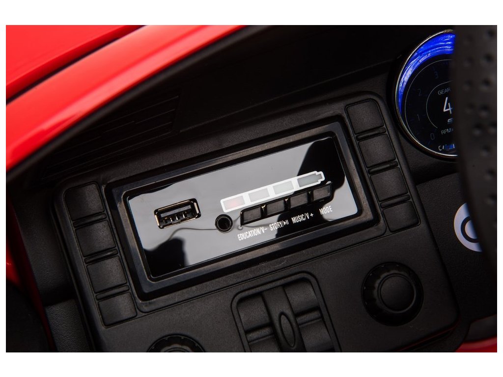 Miniaturní verze Fordu na baterie se může pochlubit fantastickou výbavou. Měkká pohovka byla vyrobena z černé ekologické kůže. Dalším prvkem, který stojí za zmínku, je hudební panel s USB, SD a MP3 vstupem.