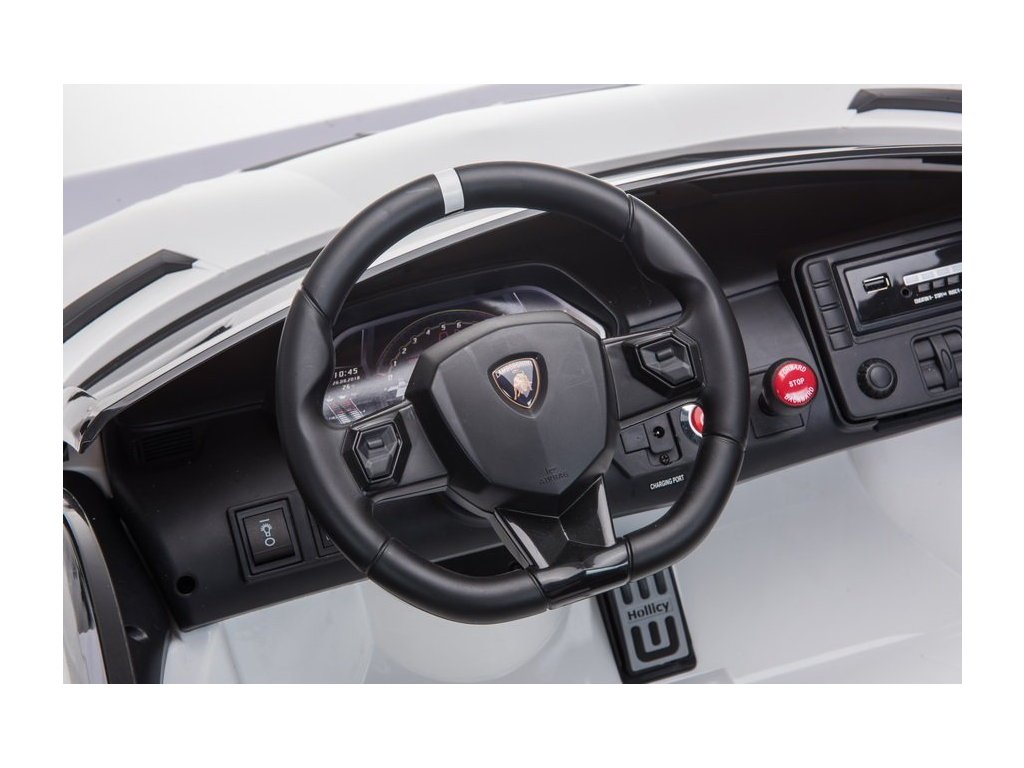 Prezentovaný vůz Lamborghini Aventador je miniaturizovanou verzí fantastického vozu a má originální licenci od automobilky Lamborghini. Díky tomu byla konstrukce vozidla postavena pouze z těch nejkvalitnějších komponentů, navíc ozdobených charakteristickým, rozpoznatelným logem. Elektrické Lamborghini Aventador je esencí spojení motorismu a sportu. Potěší oči jak dětí a pečovatelů, tak i všech kolemjdoucích.