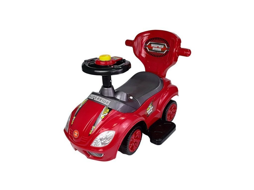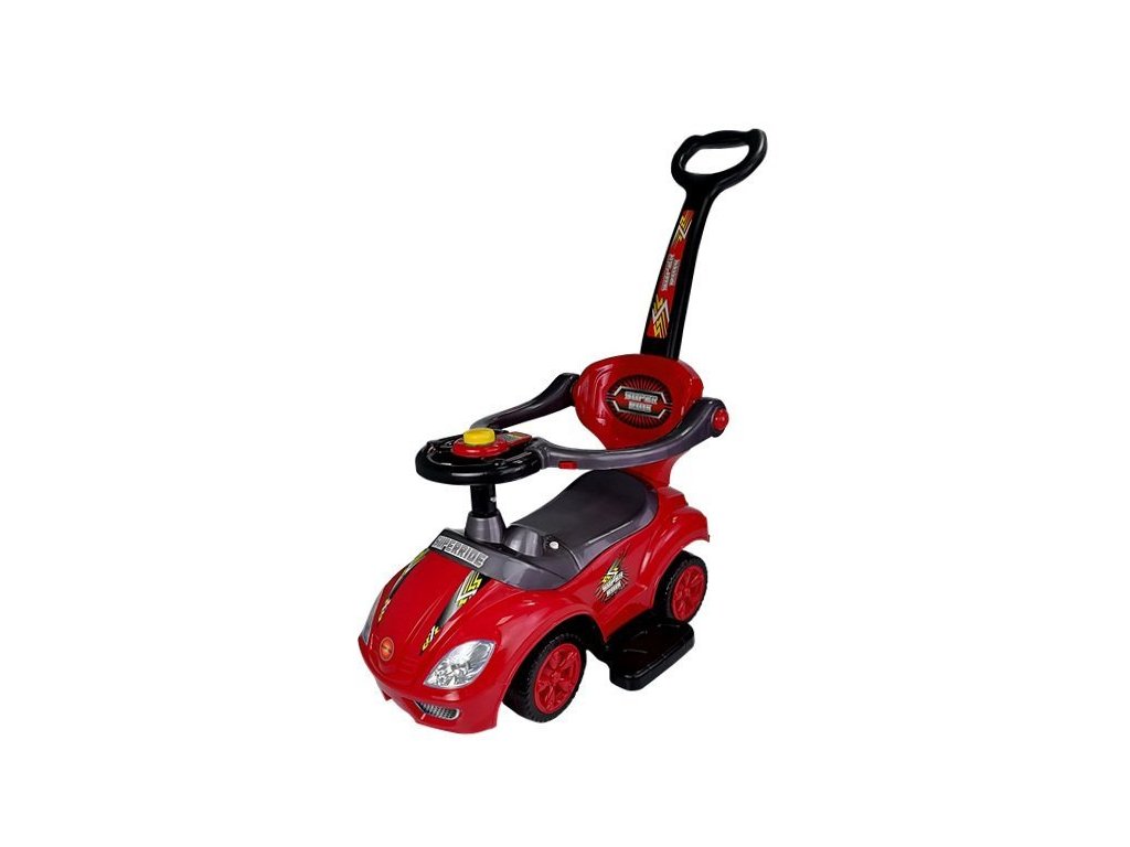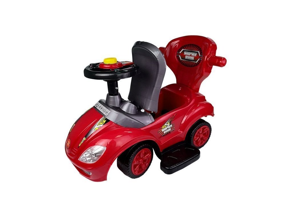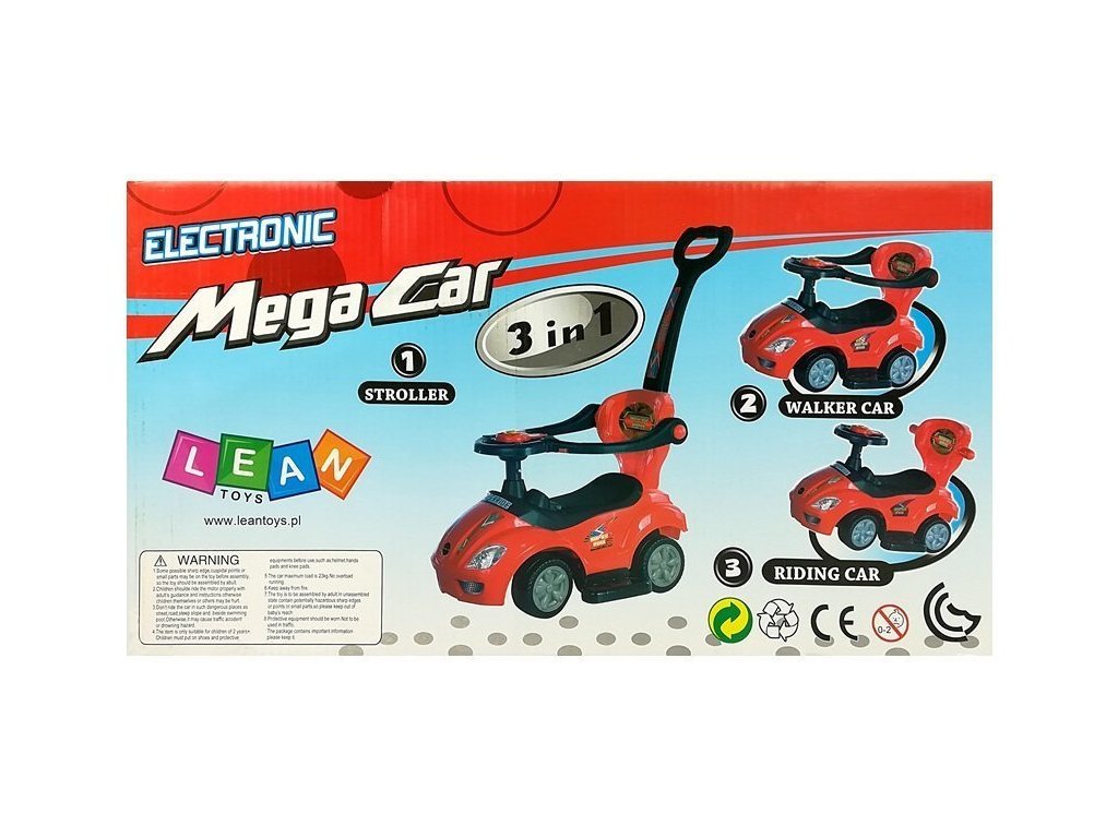 Batolata jezdí na tlačení spolu s rodičovskou rukojetí Mega Car 3v1 červená