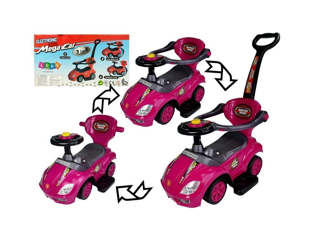 Batolata jezdí na tlačení spolu s rodičovskou rukojetí Mega Car 3v1 růžová
