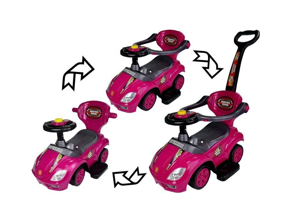 Používání prezentovaného vozidla pro malé dítě při každodenní hře má obrovský vliv na jeho vývoj. Odstrkovadlo 3 v 1 podporuje koordinaci mnoha částí dětského těla současně, také rozvíjení svalů a co je neméně důležité, podporuje učení samostatné a stabilní chůze. Jízda v mini autě umožní vašemu dítěti porozumět rychlosti, vzdálenosti a směru.