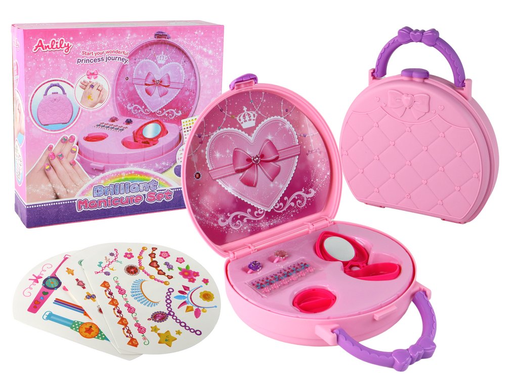 Náš malý kufřík pojme mnoho kouzelných překvapení. Po otevření před sebou najdete okouzlující růžové uzamykatelné zrcátko ve tvaru srdce, které vám pomůže nejen udržet stylový vzhled, ale také dodá kouzlo a sebevědomí.