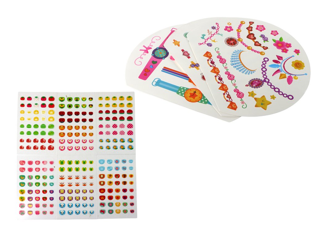 Po vyjmutí plastové poličky se na dně kufru schovají různá tetování ve tvaru hodinek, náhrdelníků, náušnic a prstenů. Je to skvělý způsob, jak experimentovat s různými vzory a módními doplňky. Sada navíc obsahuje drobné samolepky na nehty, které vašemu dítěti umožní ozdobit si nehty originálním způsobem.
