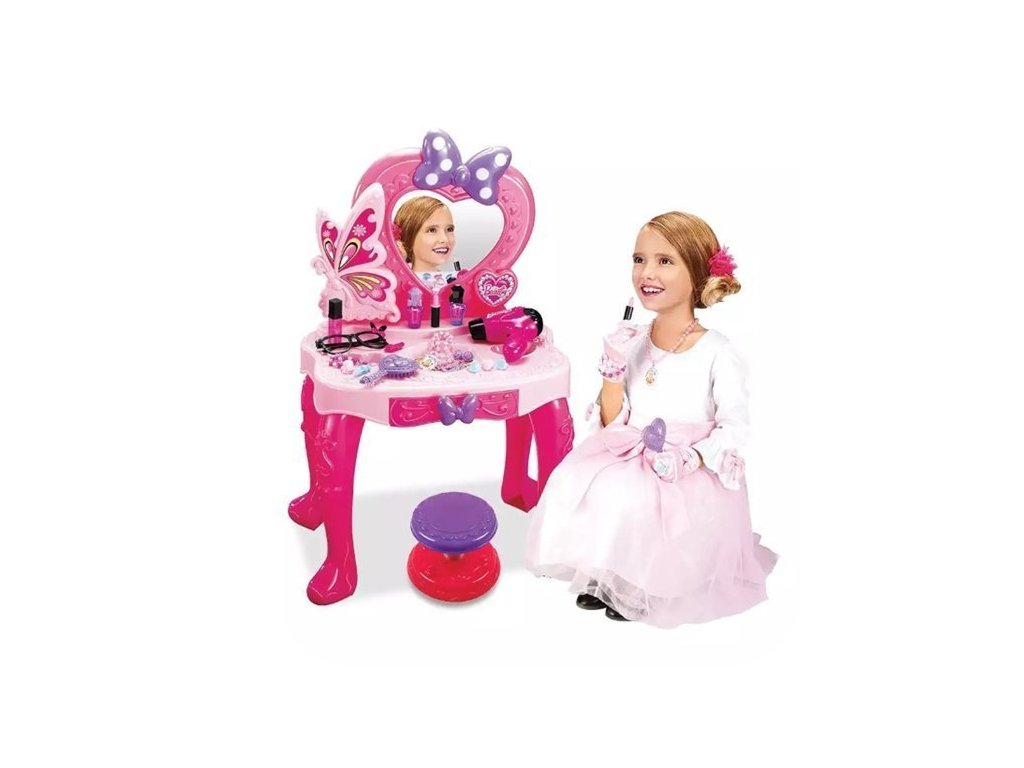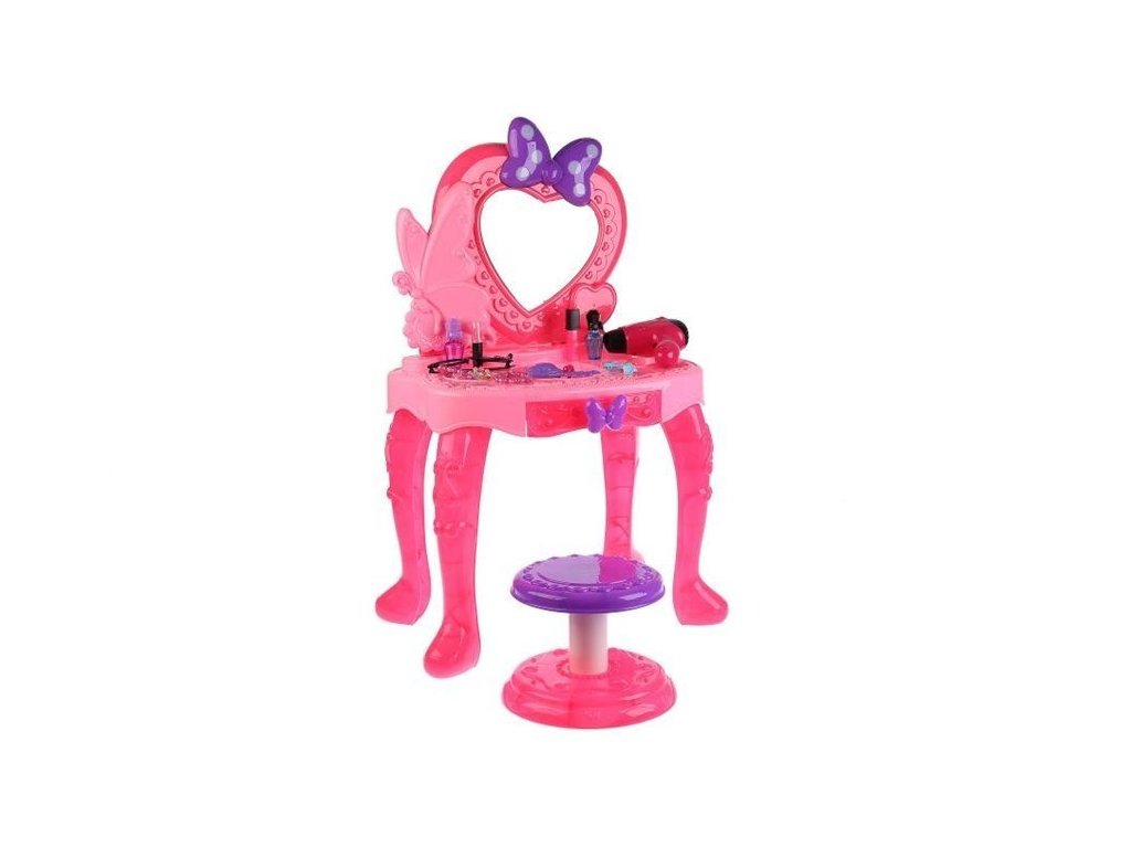 Toaletní stolek je perfektním tipem na dárek pro malou parádnici, která sní o tom, že se v budoucnu stane kosmetičkou. Okouzlující set ve dvou odstínech růžové s prvky fialové umožní každé princezně hrát si před zrcadlem brzy ráno. Zrcátko je vyrobeno z bezpečného plastu, ve kterém malá princezna uvidí svou krásnou tvářičku. Hračka byla navržena s ohledem na nejmenší holčičky, a proto je vyrobena z certifikovaných plně bezpečných materiálů. Design toaletního stolku a vzory toaletního stolku dodávají styl a eleganci. Sada obsahuje mnoho prvků. Po vložení baterií a stisknutí tlačítka sušička produkuje vzduch jako skutečné zařízení.