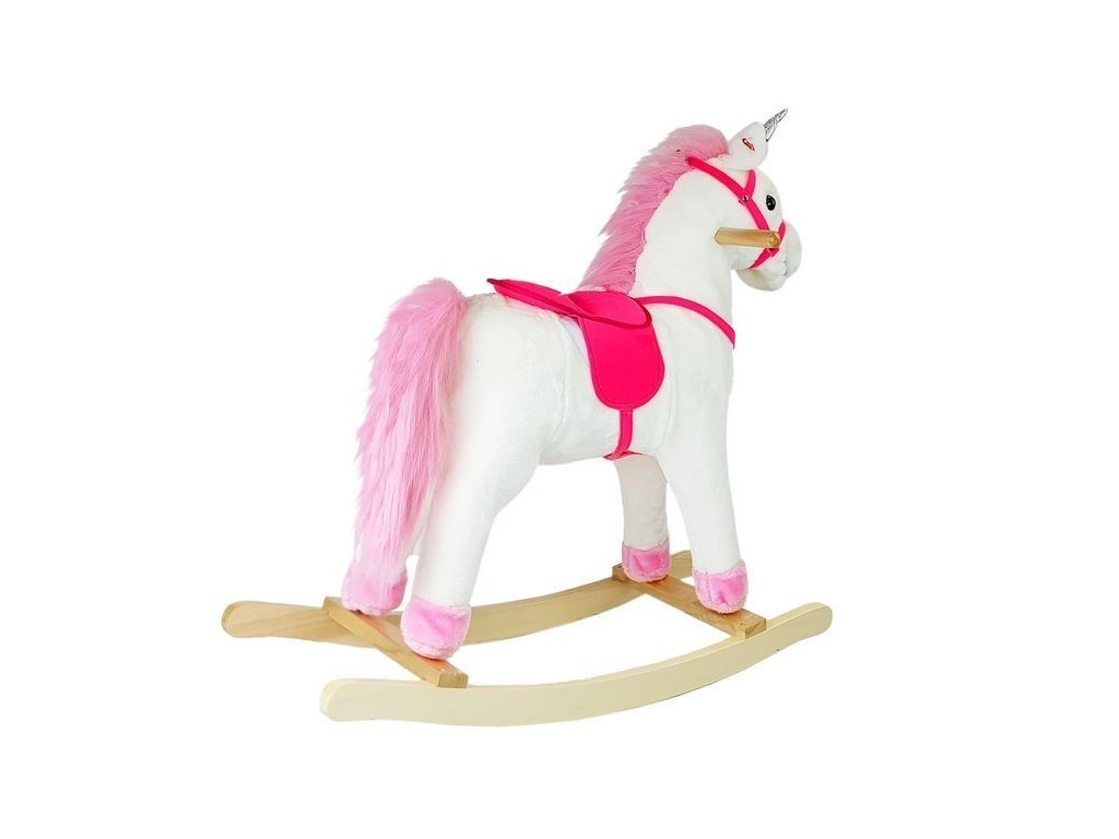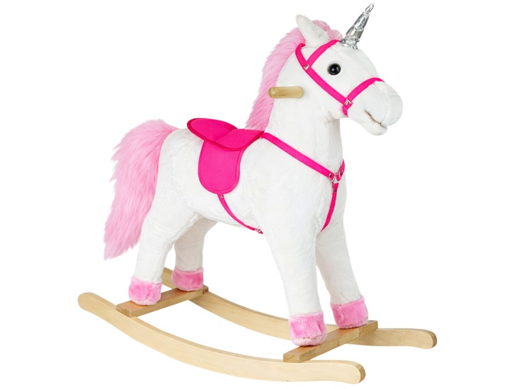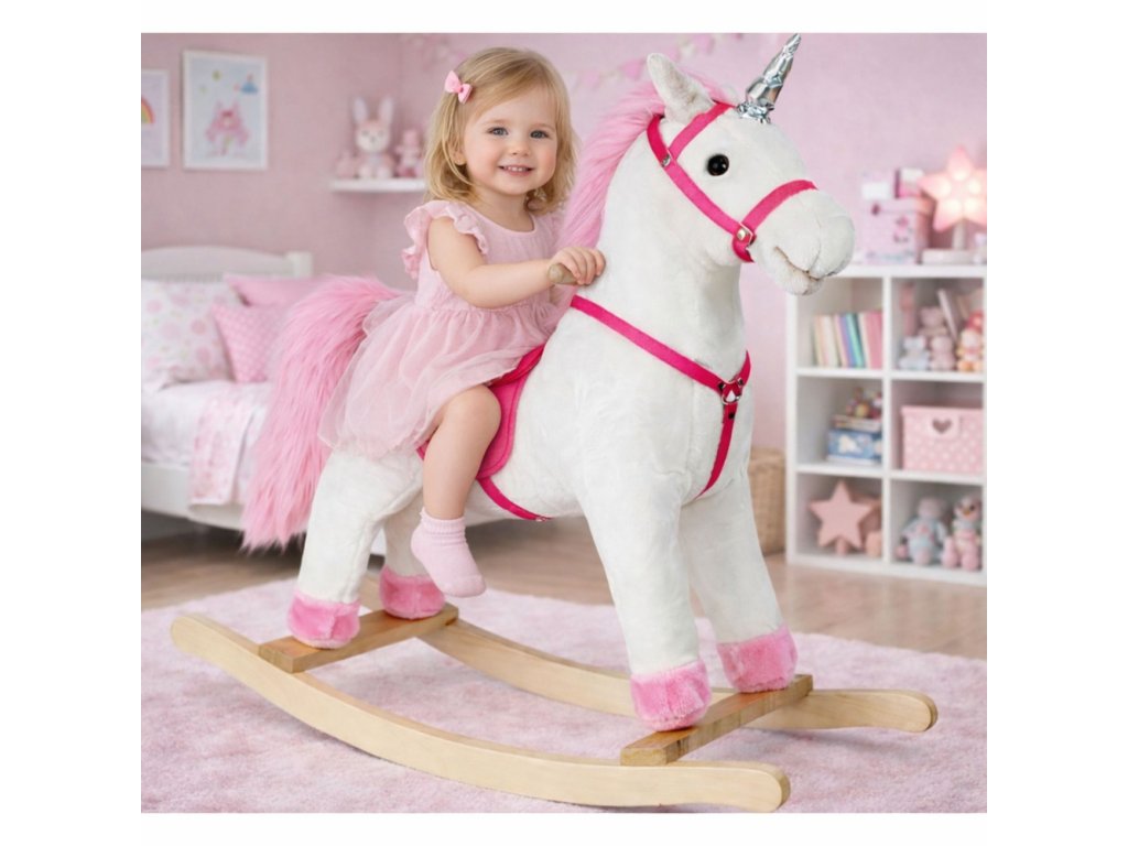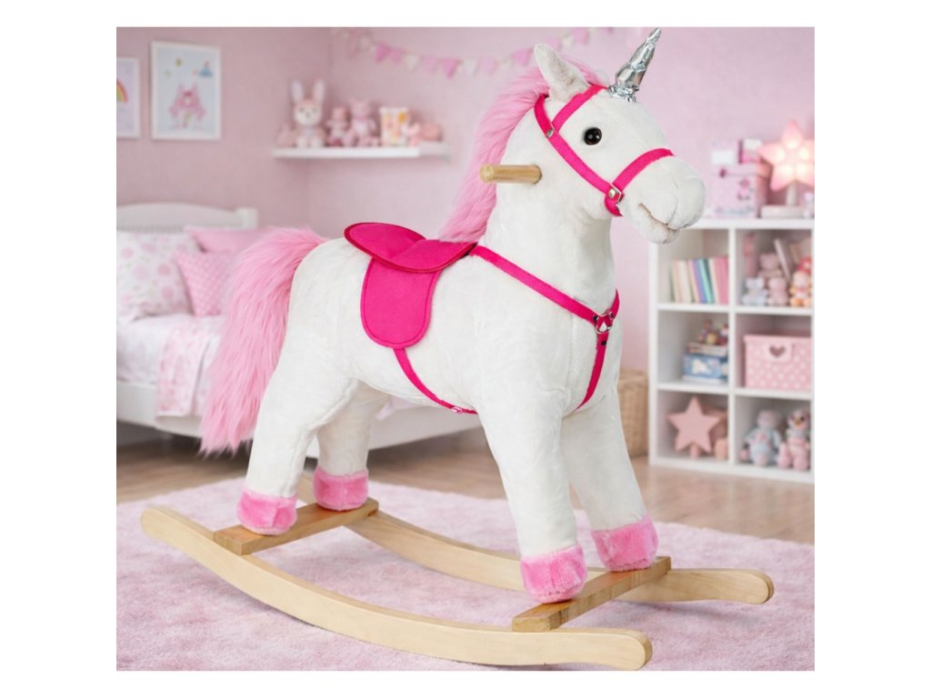 Jakmile se vaše dítě posadí na měkkého plyšového bílého koně, bude okamžitě ponořeno do kouzelného, vzdáleného světa divokého západu. Houpací kůň byl pečlivě vyroben z materiálu příjemného na dotek, který zajišťuje pohodlí i při dlouhé jízdě. Jeho hlavu zdobí dlouhé, růžové vlasy.