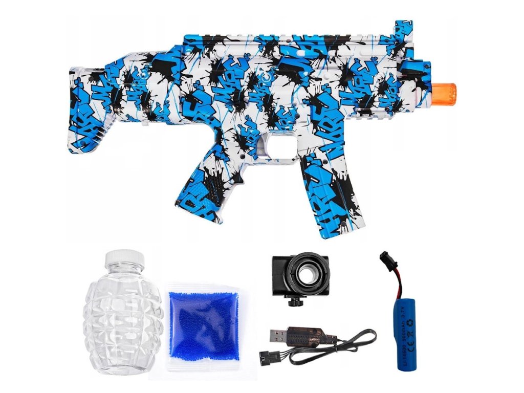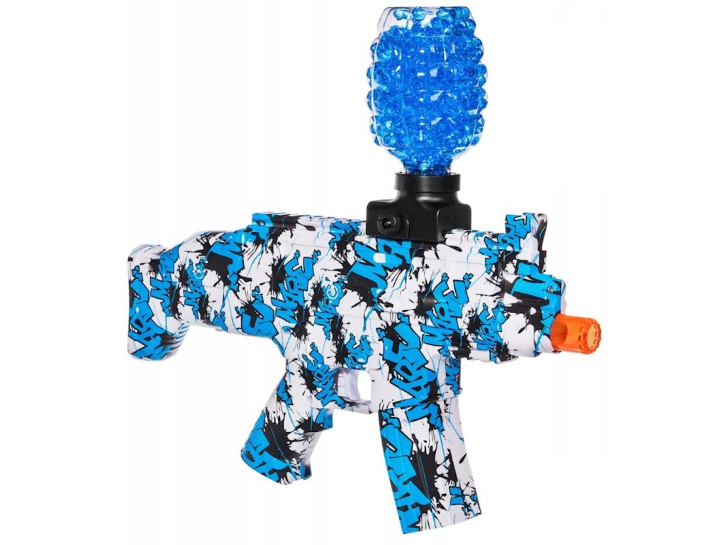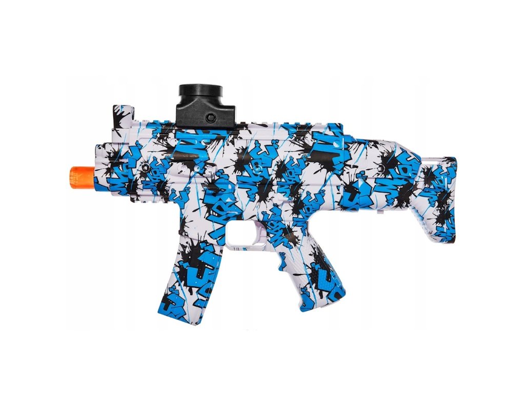 Řada gelových kuličkových pistolí představuje nový rozměr ve hře automatických odpalovacích zařízení s bezpečnou municí. Je to skutečná mánie, která ovládla svět! Měkké bezpečnostní gelové kuličkové pistole jsou přesnější než vystřelovače pěnových šipek nebo kuliček. Vzhledem k vysoké rychlosti vystřelovaných kuliček a jejich velikosti - cca 7/8 mm, je určena starším dětem než pistole s pěnovou municí.Automatická puška M4, bílo-modrá, na gelové kuličky ST620