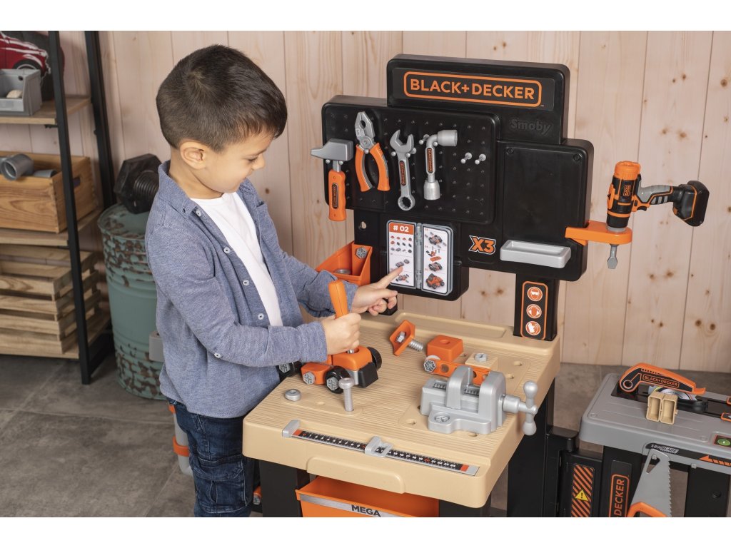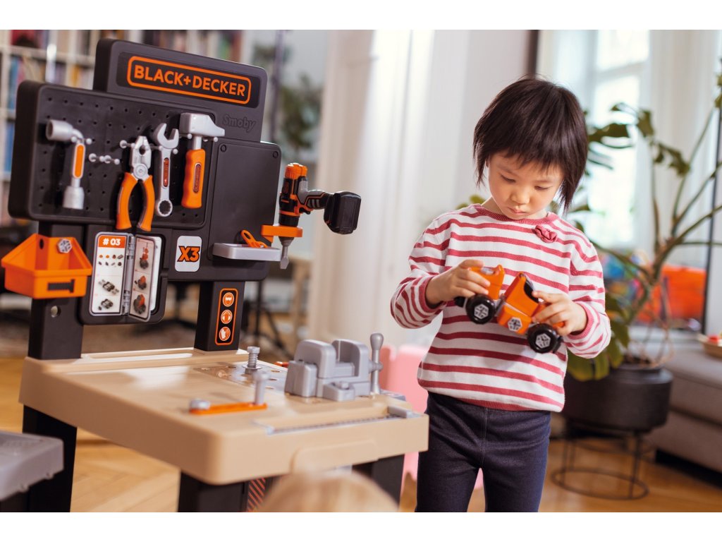 Smobyje jednou z nejznámějších značek hraček na světě. Výrobky Smoby se vyznačují předevšímvysokou životností, nejvyšší kvalitou, bezpečnosta také > spolehlivost.Značka trvale poskytujeradost aspoustu zábavynejmladší po mnoho generací. Tato sada pochází ze série hraček vytvořených v licenci Black & Decker, proto nástroje v ní obsažené jsou věrnými kopiemi skutečně existujících nástrojů této značka.