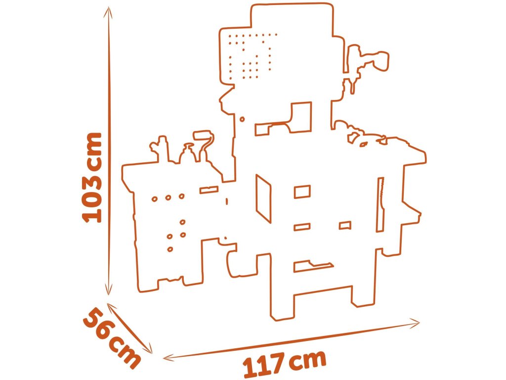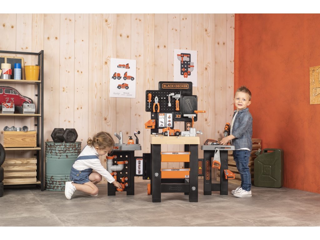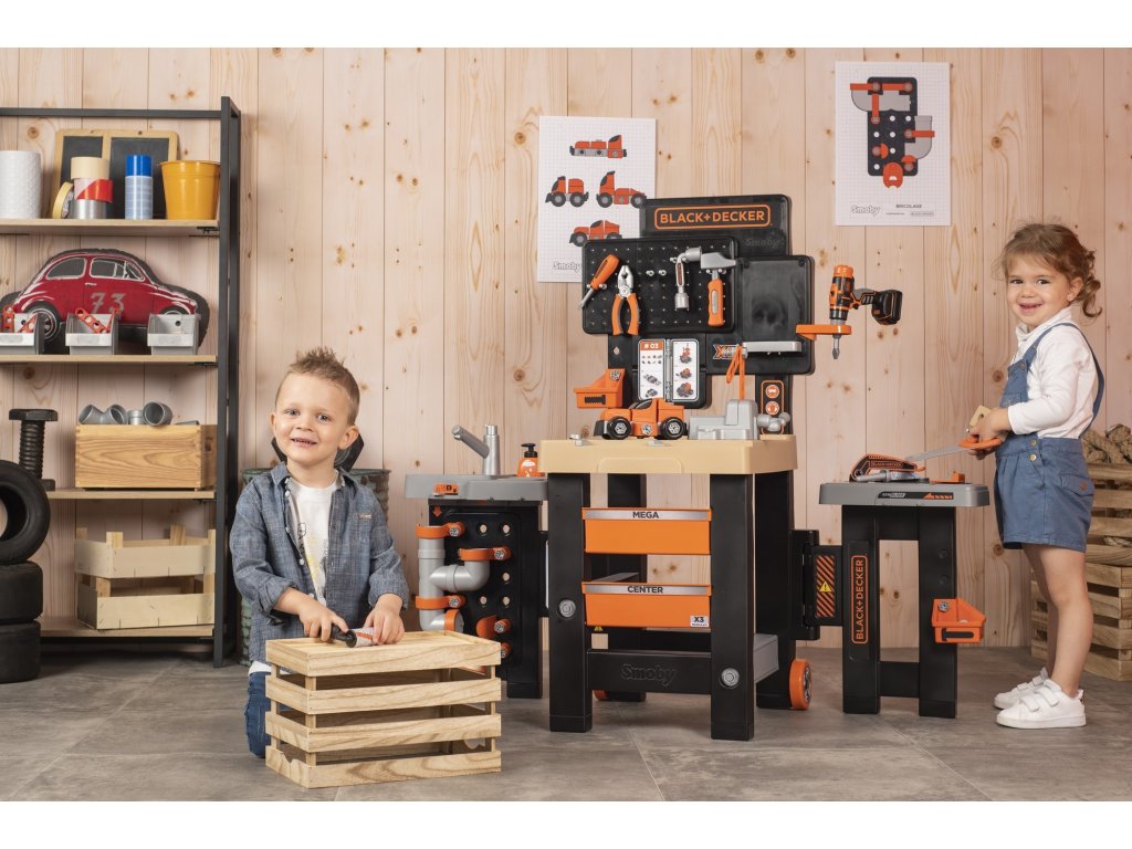 Díky velkému dílenskému centru mohou děti objevit radost z kutilství. Mega dílnakromě klasického místa pro nářadí na zatloukání, vrtání a šroubování nabízí dalšínátěrové a klempířské stanoviště, a také prostor pro pilu.
