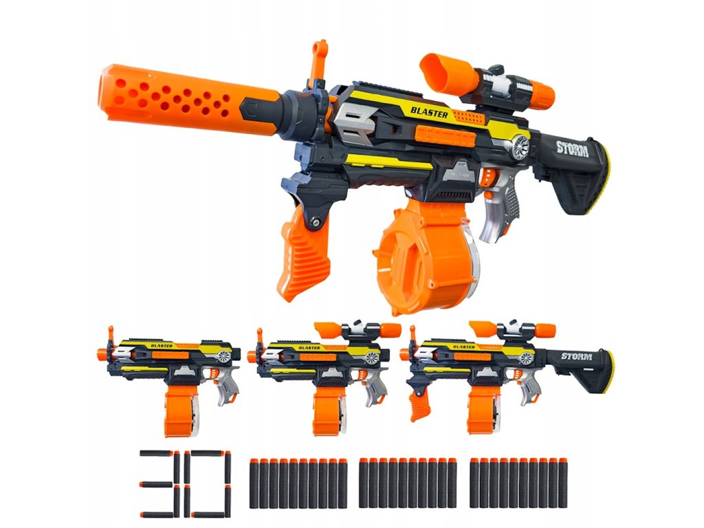 Blaster Shots Semi-Automatic Pistol 30 Darts SB567Poloautomatický odpalovač Blaster Shots je dynamická puška vytvořená s ohledem na dynamickou hratelnost. Díky pevné konstrukci, velké kapacitě zásobníku a příslušenství, jako je zaměřovač, pažba nebo falešný tlumič, poskytuje tento blaster realistický a pohlcující zážitek během boje. Vyměnitelný bubnový zásobník a zásoba šipek umožňují nepřerušovanou akci ještě déle.