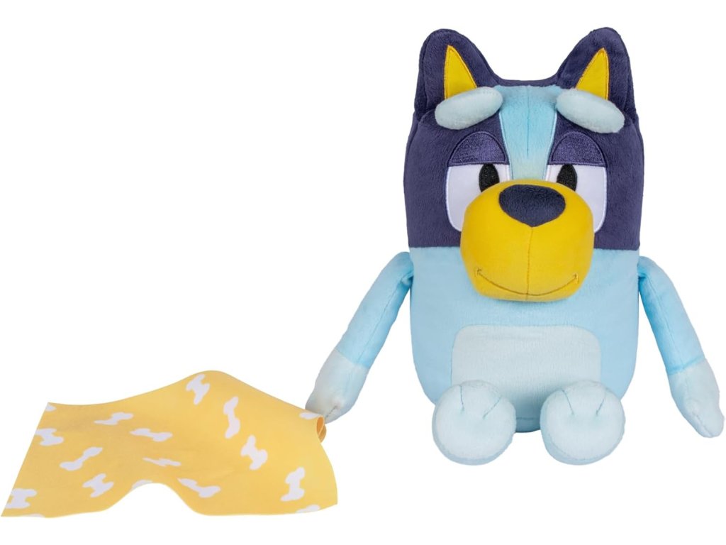 Objevte okouzlující svět Bluey! Bluey je 30cm plyšový maskot s dekou, vyrobený z výjimečně měkkých materiálů a precizního prošívání, který zpříjemní každou noc a rána plná mazlení.