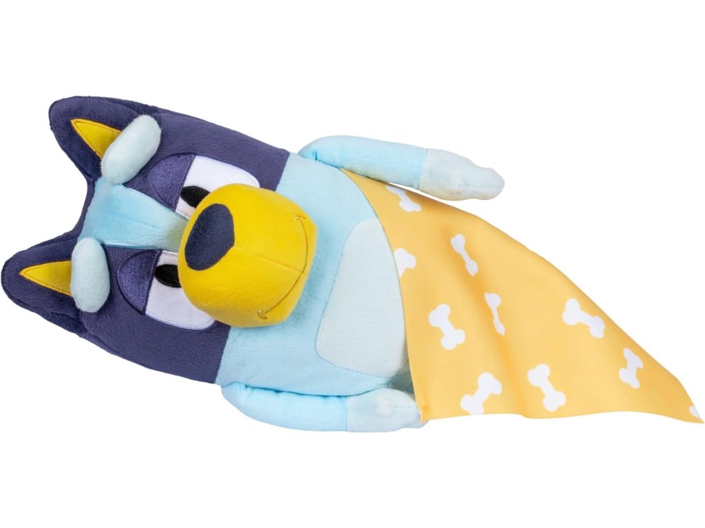- Připraveno na spaní: Bluey má přimhouřené oči a příjemnou žlutou přikrývku, která vás okamžitě naladí na klidné zdřímnutí.